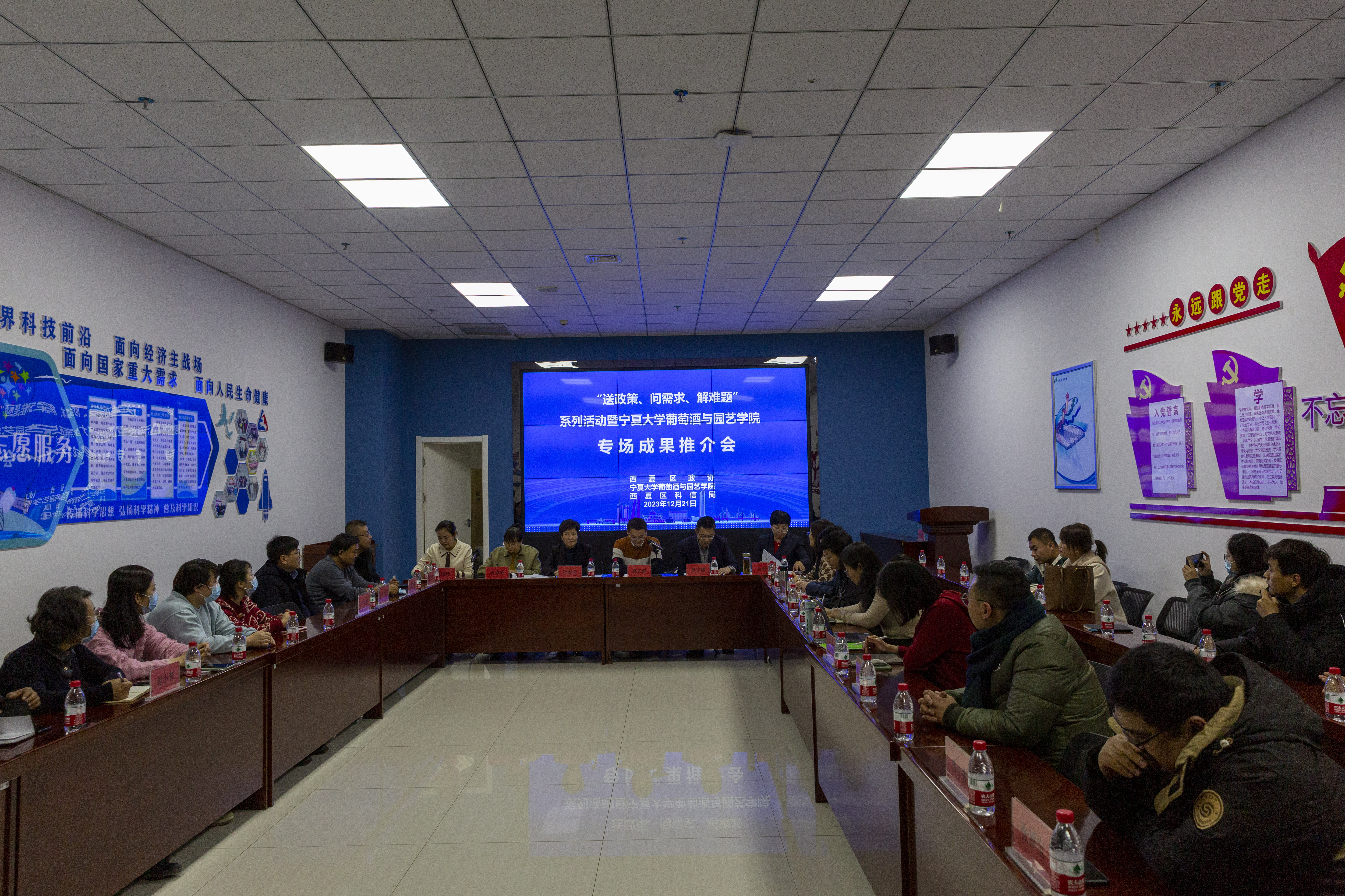 【beat365唯一官方网站新闻中心讯 葡萄酒与园艺学院】12月21日下午,由葡萄酒与园艺学院联合西夏区政协、西夏区科信局组织的“送政策、问需求、解难题”系列活动暨beat365唯一官方网站葡萄酒与园艺学院“六特”产业成果专场推介会在西夏区举行。西夏区委、政协、科信局和葡萄酒与园艺学院各级领导出席会议,葡萄酒与园艺学院教师代表、辖区涉农企业负责人、部分政协委员共50余人参加。会议由西夏区委常委、政府副区长高天舒主持。