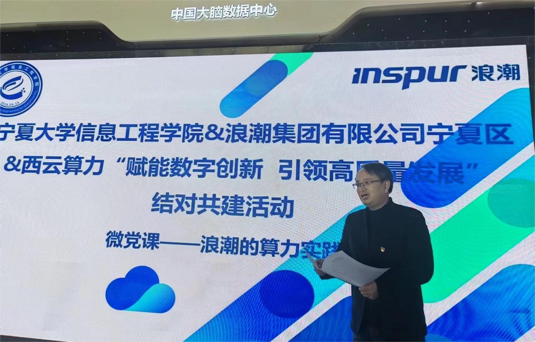 在理论学习环节,信息工程学院党总支书记汪文帅领学了《习近平新时代中国特色社会主义思想专题摘编》“实施科教强国战略,强化现代化建设人才支撑”专题相关篇目,重温了习近平总书记在科学家座谈会上的重要讲话精神。浪潮集团有限公司宁夏区党支部书记董亮玉领学了习近平总书记关于数字经济的重要论述。随后,大家围绕科技自立自强、教育强国、人才强区、数字经济和东数西算等内容开展了热烈讨论和交流。