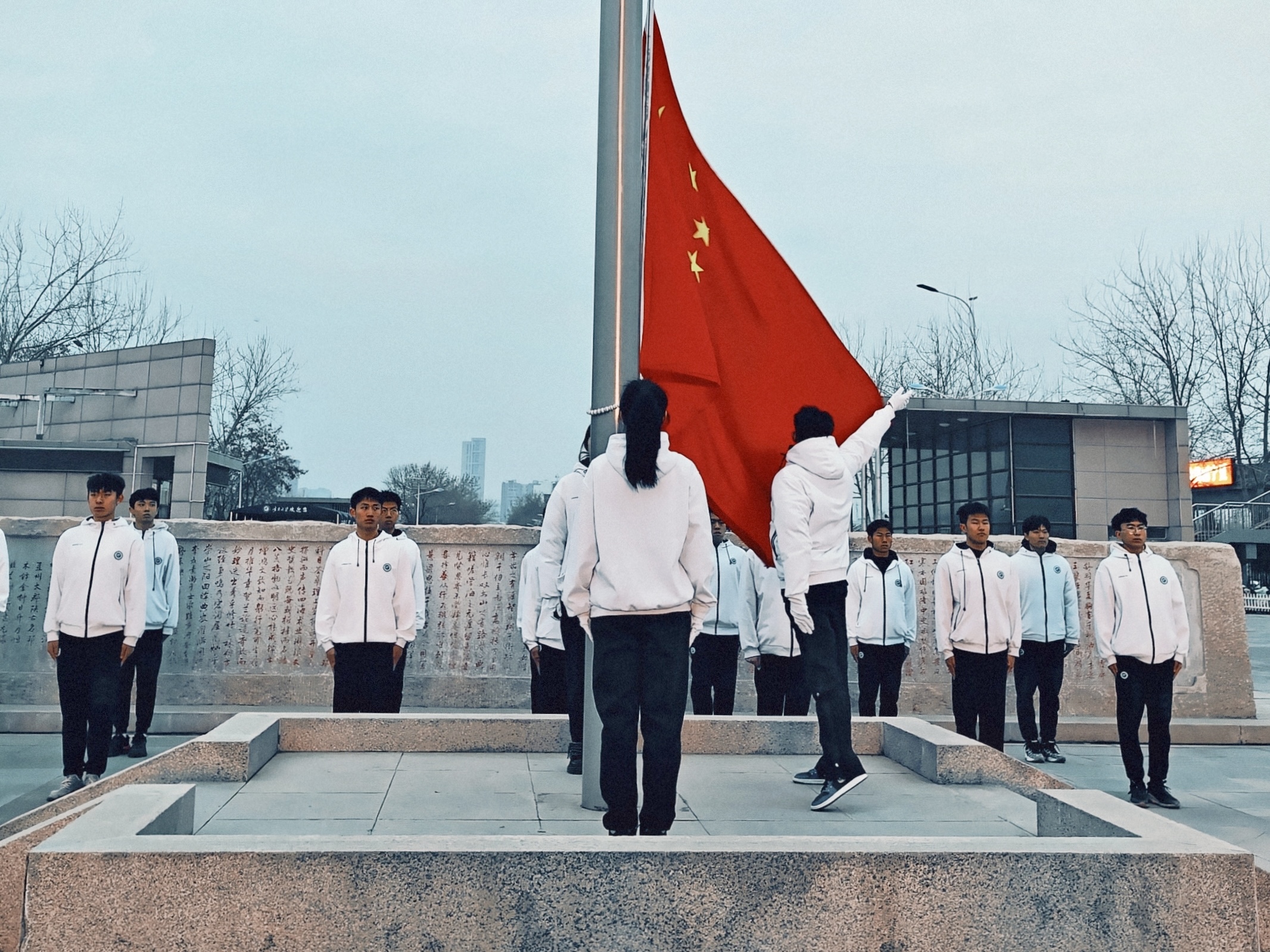 【beat365唯一官方网站新闻中心讯 守正书院】新学期开启新征程,新目标激发新动力。3月4日清晨,守正书院在贺兰山校区德勤楼前举行以“弘扬雷锋精神 践行使命担当”为主题的庆祝新中国成立75周年——学雷锋纪念日开学升国旗仪式。书院领导班子成员、全体辅导员及各年级学生代表参加升国旗仪式。仪式由书院党委副书记何文栋主持。