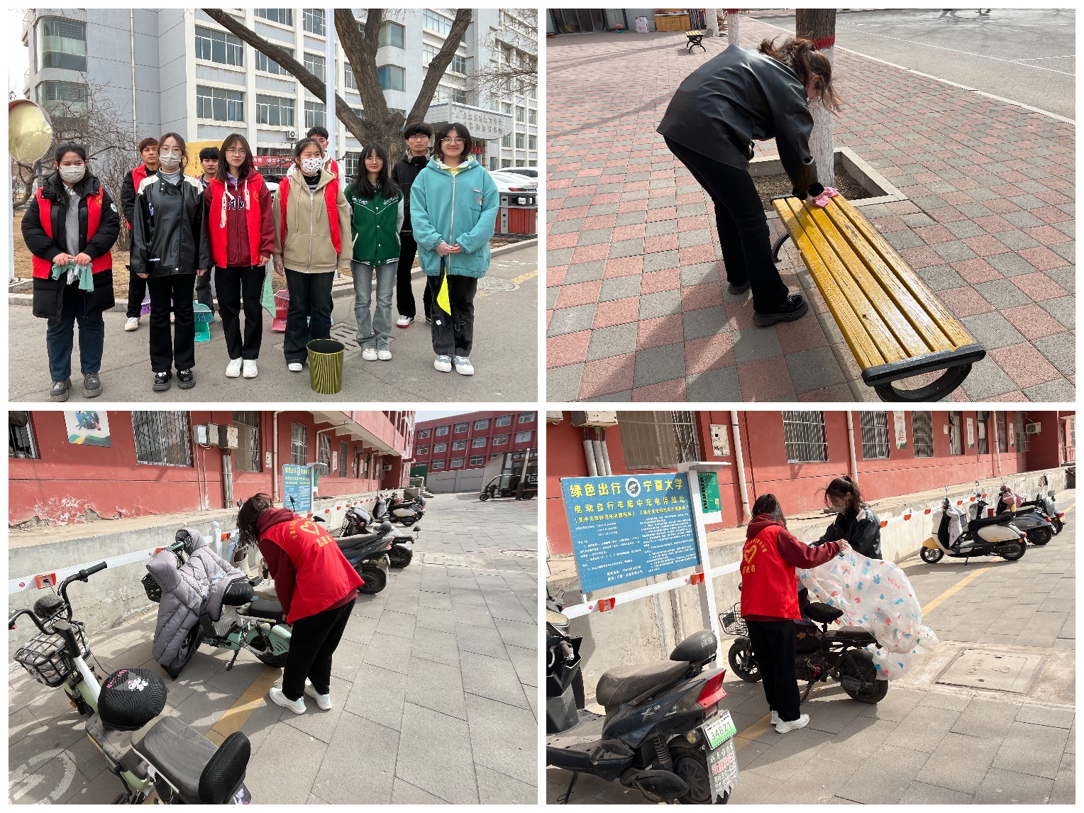 志愿者们手持扫把、簸箕、抹布等,分成若干个小组,分别负责校园不同区域的清扫。经过大家的共同努力,校园环境变得整洁有序。