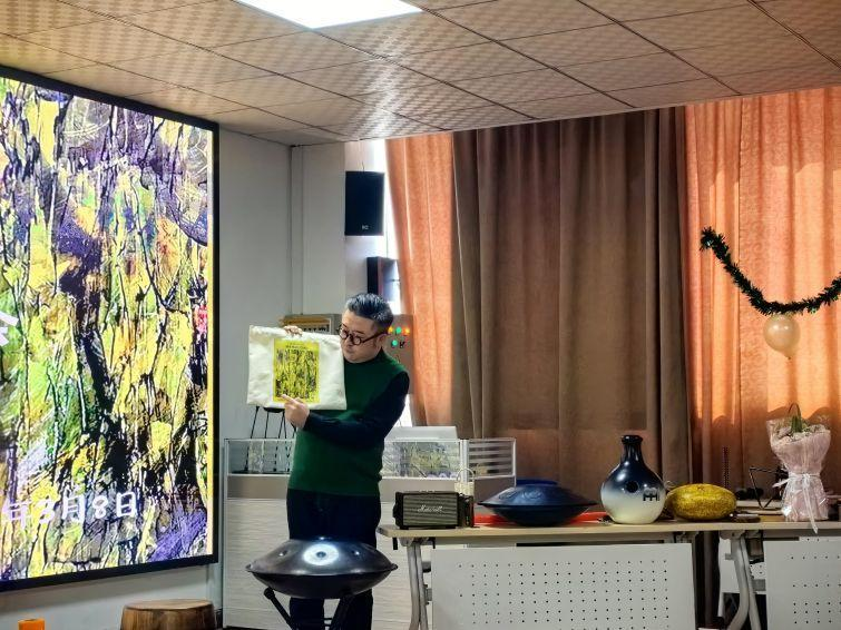马浩谦向大家详细介绍了溪水鼓、拇指钢琴、巫毒鼓、钢舌鼓等乐器,分享了乐器演奏出的美妙旋律,现场教职工热情互动、陶醉其中。