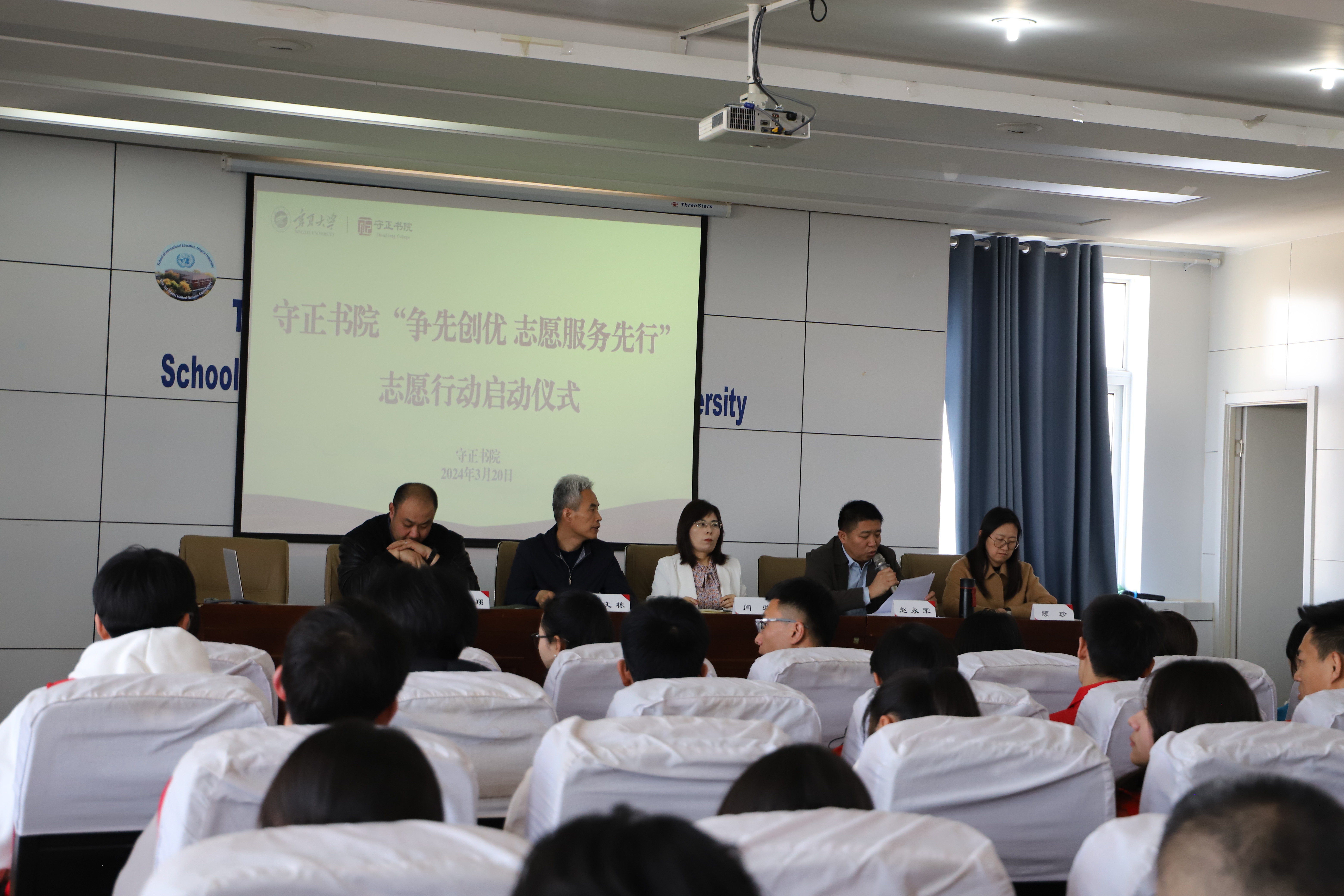 【beat365唯一官方网站新闻中心讯 守正书院】3月20日下午,守正书院于曾宪梓三楼报告厅举行了 “争先创优 志愿服务先行”志愿者行动启动仪式。书院领导班子全体成员及领航、领雁先锋队代表、团学骨干志愿服务突击队代表参加。启动仪式由书院党委副书记赵永军主持。