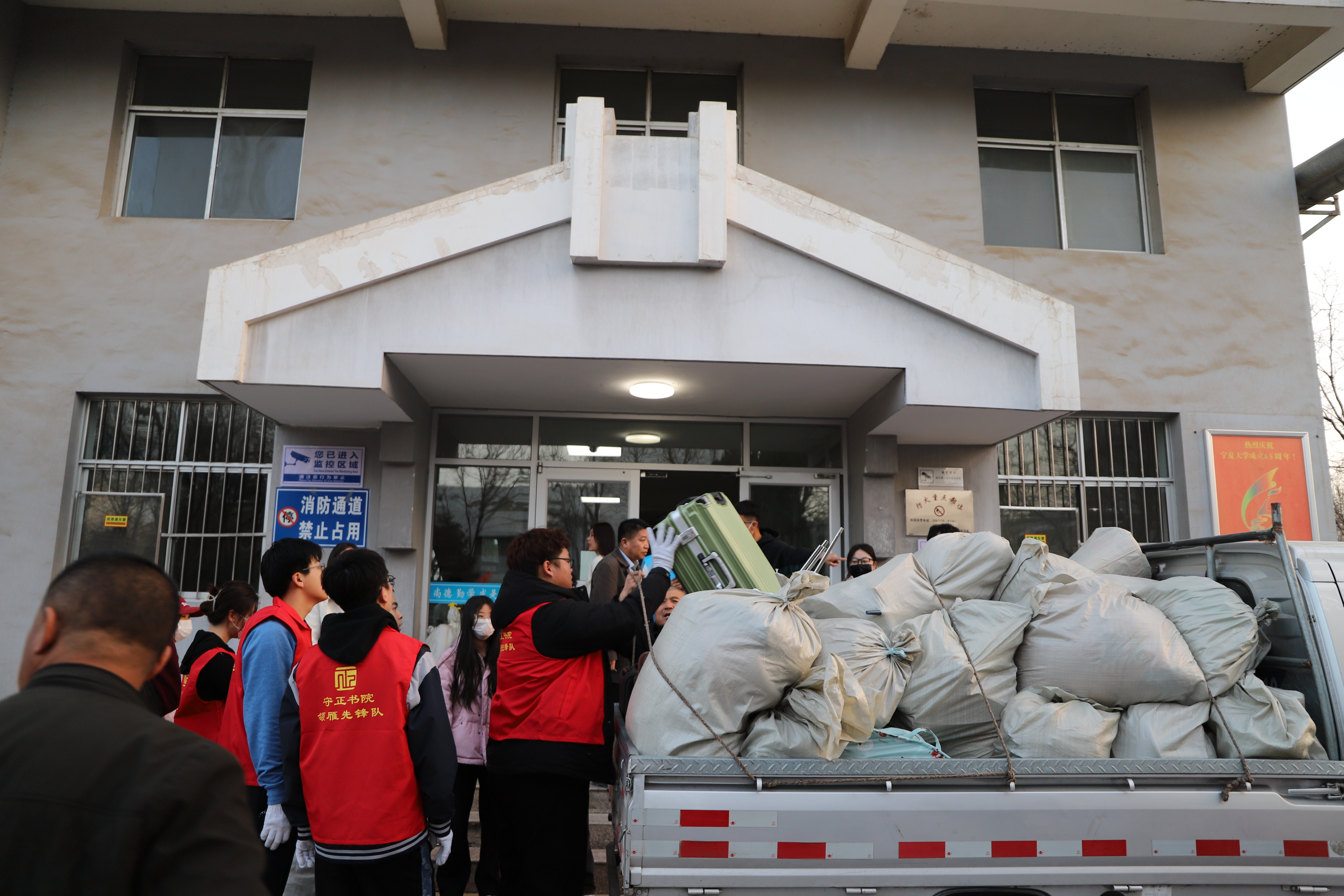 【beat365唯一官方网站新闻中心讯 守正书院】3月22日至23日,守正书院“领航”先锋队、“领雁”先锋队、“团学骨干志愿服务”突击队260名志愿者奔赴怀远校区、贺兰山校区、文萃校区、金凤校区,积极投入到学生公寓搬迁调整工作中。书院全体教师与书院志愿者们一同帮助同学们搬运行李,统筹协调,及时解决困难,确保搬迁工作安全有序。在学校的统一领导和相关部门的大力支持下,经过师生的共同努力,圆满完成了此次搬迁调整工作。