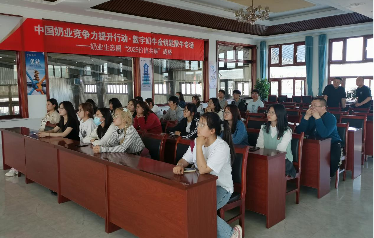 在宁夏新澳农牧有限公司,负责人黑伏平为同学们准备了新鲜熬制的鲜奶,醇香甘甜的鲜牛奶得到同学们的连连称赞。他还介绍了宁夏新澳农牧有限公司以科技为先导,以奶牛养殖业为核心,专注打造一体化牧业养殖基地的发展概况、数字化牧场建设情况及科研合作等情况。