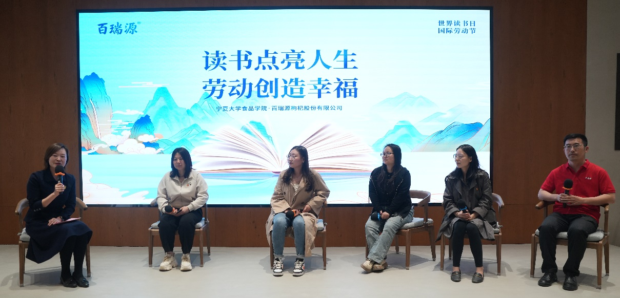 师生们在讲解员的带领下参观了庄园的建筑、自然景观和枸杞产品展示,加深了对枸杞产业的认知。在读书会活动现场,百瑞源公司董事长助理、幸福学院院长朱瑞华女士向大家介绍了活动意义,并带领全体师生、员工集体诵读了《文化自信 民族复兴》相关内容,通过诵读经典感受文学魅力。随后,学院青年教师孟雪梅、孙亚楠、雒雪丽和李垚然向大家分享了自己的读书心得和体会,并与嘉宾进行互动交流。