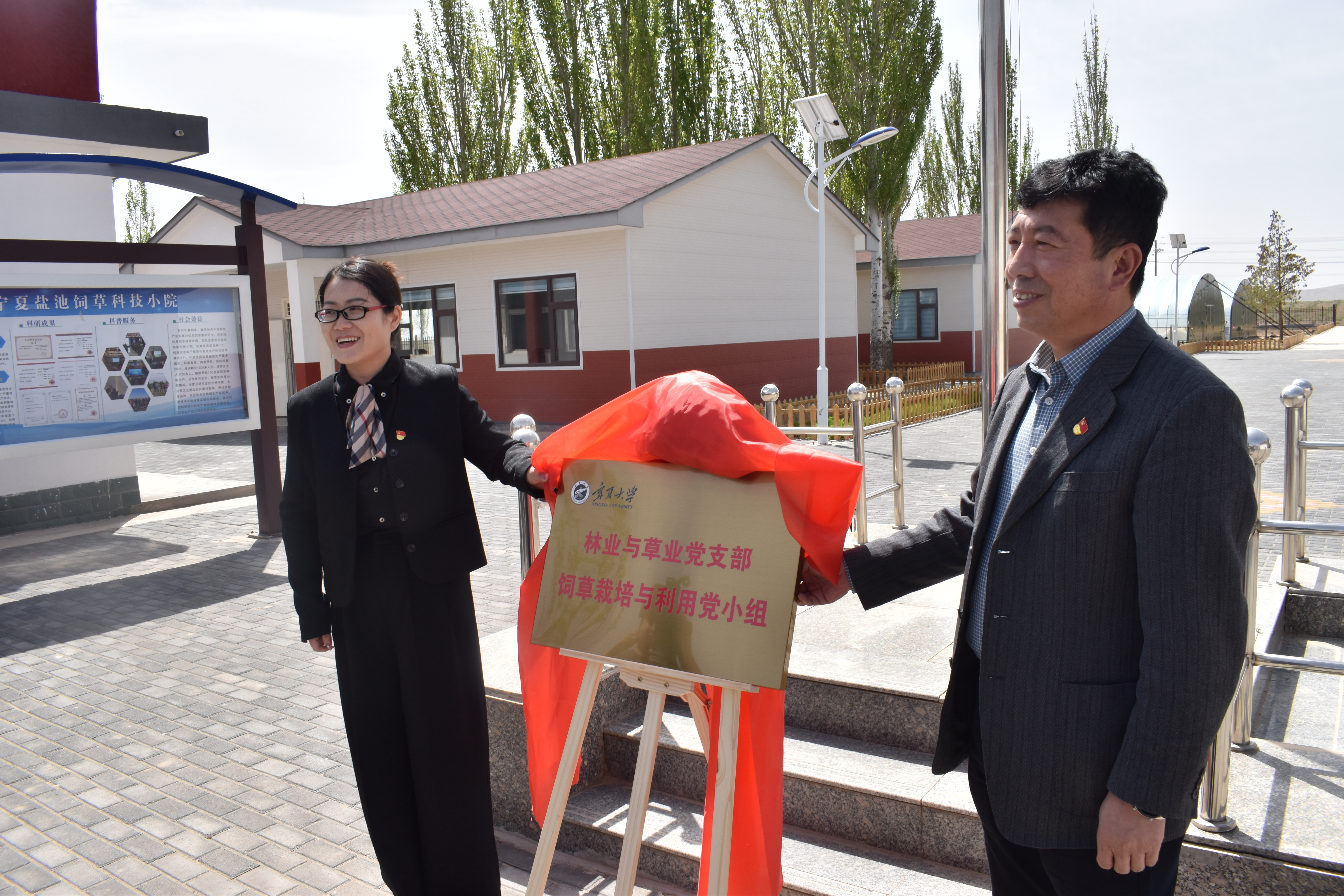 活动中,润泽书院党委书记、院长马骏,林业与草业学院党总支书记贺海明共同为林业与草业研究生党支部饲草栽培与利用党小组揭牌。饲草科技小院首席专家、林业与草业学院副院长伏兵哲教授介绍了宁夏盐池饲草科技小院的基本情况。科技小院学生党员代表、2021级草学专业硕士研究生宋文学回顾了自己在科技小院从牧草学科的“门外汉”变成 “内行人”的三年学习试验经历。书院、学院教师和林业与草业研究生党支部学生在饲草科技小院开展座谈会,重温了习近平总书记重要回信精神。