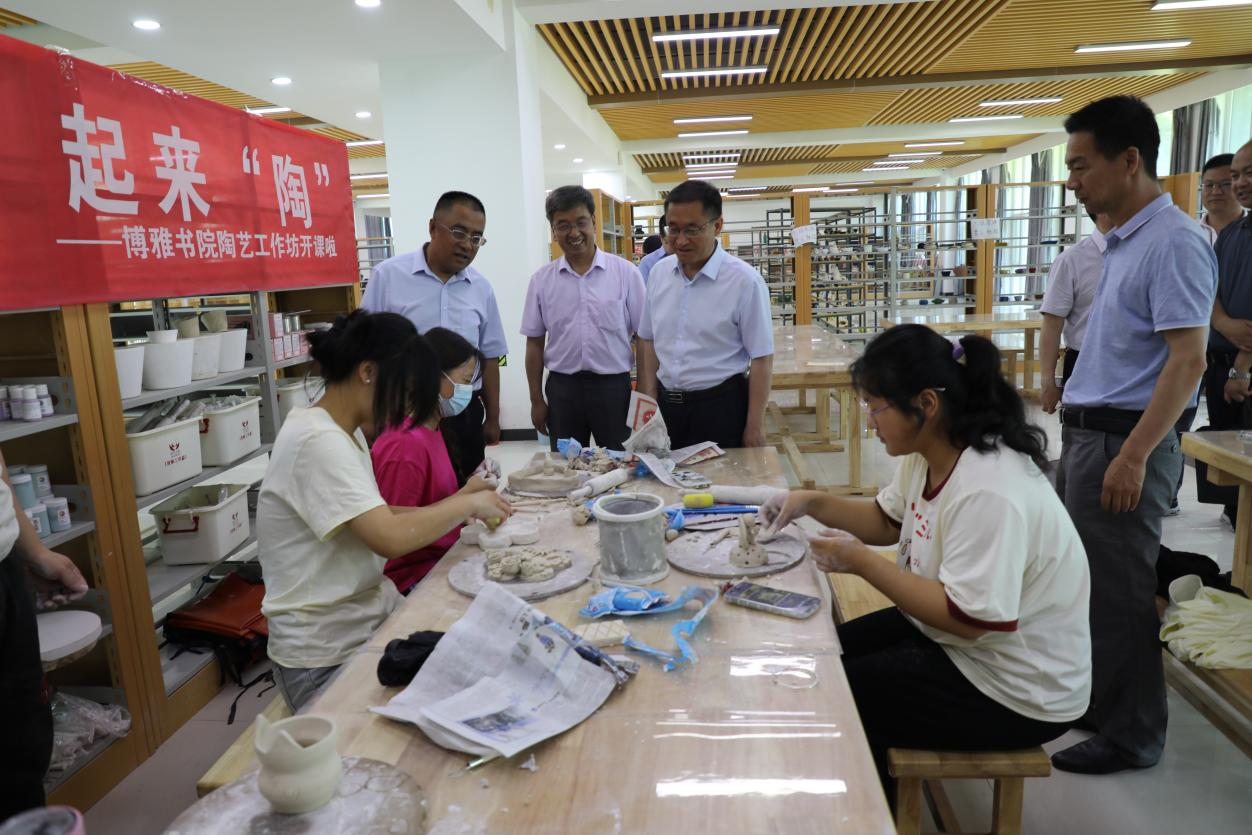 会后,马元一行实地走访了博雅学生社区、劳动教育基地、图书馆、前沿交叉学院办公楼,详细询问、了解了学生日常管理、活动开展、人才引进、资产配置等相关工作。