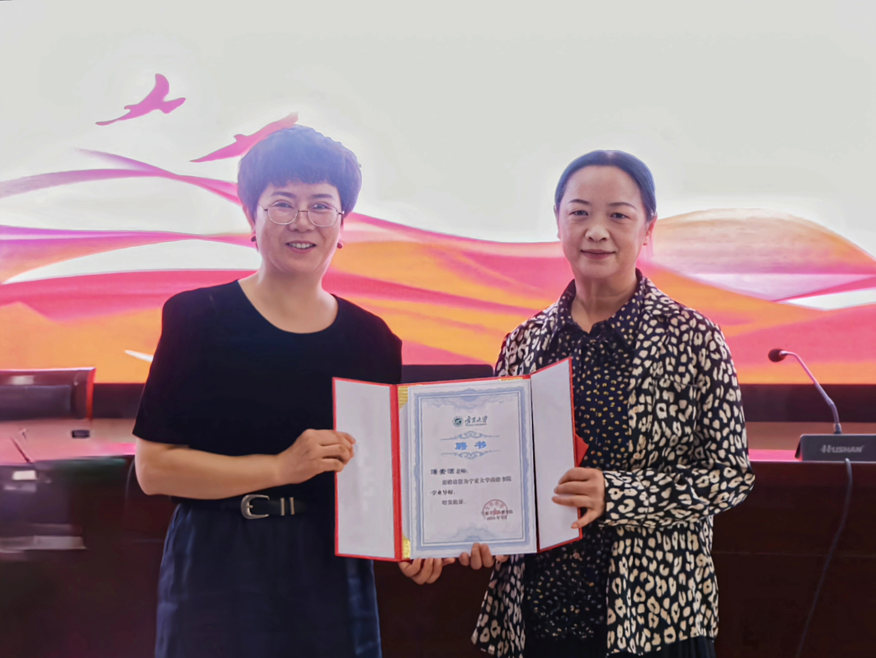 【beat365唯一官方网站新闻中心讯 尚德书院】6月19日下午,由尚德书院党建思政中心主办的学业导师大师课于贺兰山校区文荟楼东报告厅开讲。原马克思主义学院教授、硕士生导师潘素洁主讲,近300名学生党员参加。尚德书院党委书记、院长潘瑞向潘素洁颁发学业导师聘书。