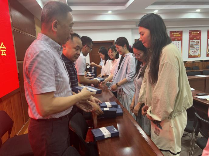 会上,领导老师们向毕业生赠送毕业礼物,表达对他们未来的美好祝愿,并鼓励毕业生们要敢于创新、敢于拼搏,不断追求自己的梦想和目标,勇敢面对未来的挑战和机遇。苏建宇从多角度与毕业生们分享成长成才历程,鼓励他们要持续学习、积极实践、常回母校。张强寄语毕业生们要满怀激情地面对未来,始终坚持梦想,保持良好心态,不断成长和进步,开启自己幸福的人生。邓光存从就业角度鼓励毕业生们要保持谦逊敬业的态度,将个人的职业规划与长远的生涯规划紧密结合,确保前行之路稳健而明智。
