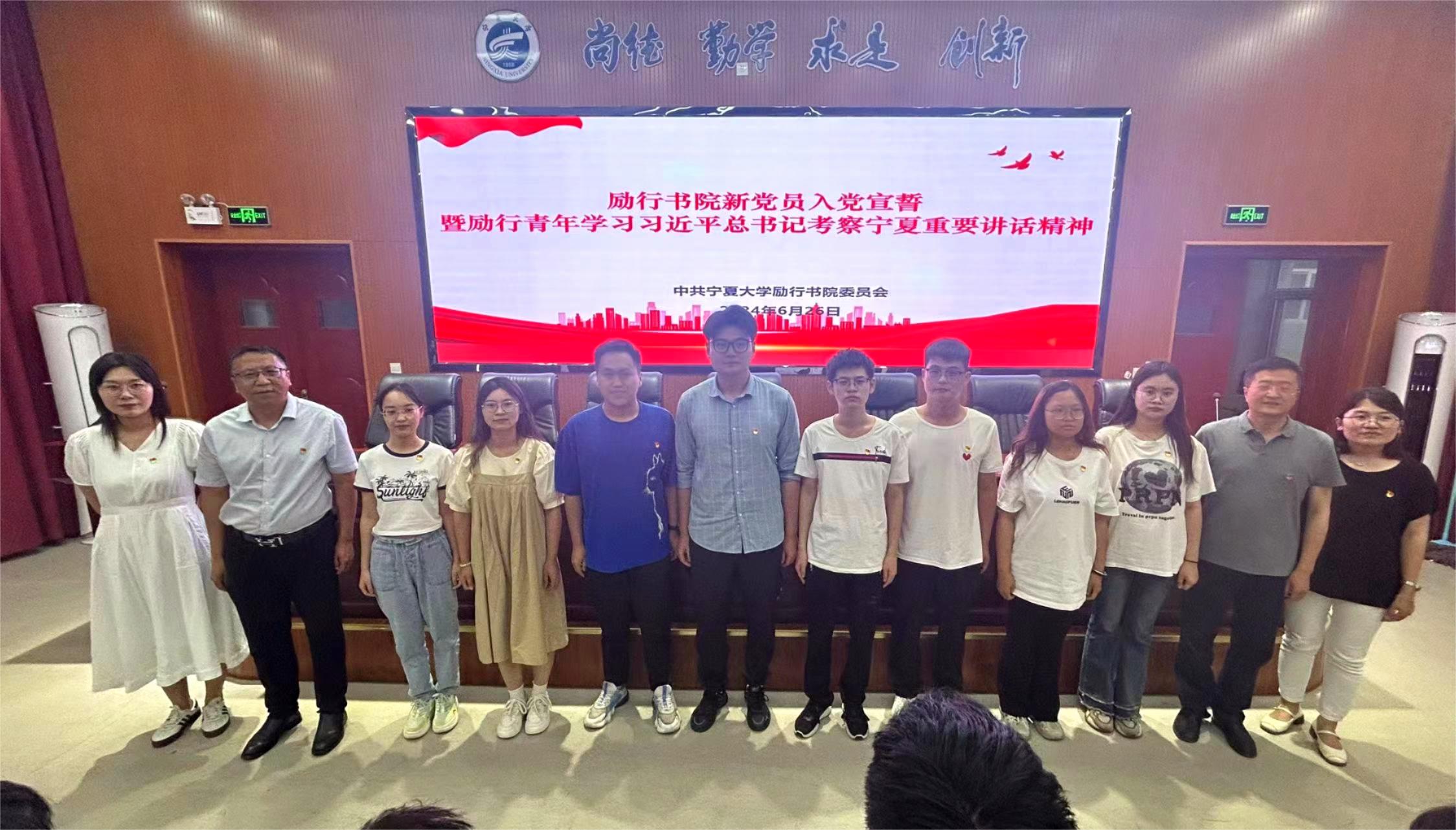 【beat365唯一官方网站新闻中心讯 励行书院】为学习宣传贯彻习近平总书记考察宁夏重要讲话精神、持续推进党纪学习教育走深走实,进一步提升新发展党员的党性修养和党员意识,励行书院2024年新党员入党宣誓仪式暨励行青年学习习近平总书记考察宁夏重要讲话精神学习会于6月26日在文萃校区知行楼三阶报告厅举行。书院党委书记、院长张强,党委副书记王兵、师生党员代表以及28名新党员参加了活动,仪式由党建思政中心主任常瑞敏主持。