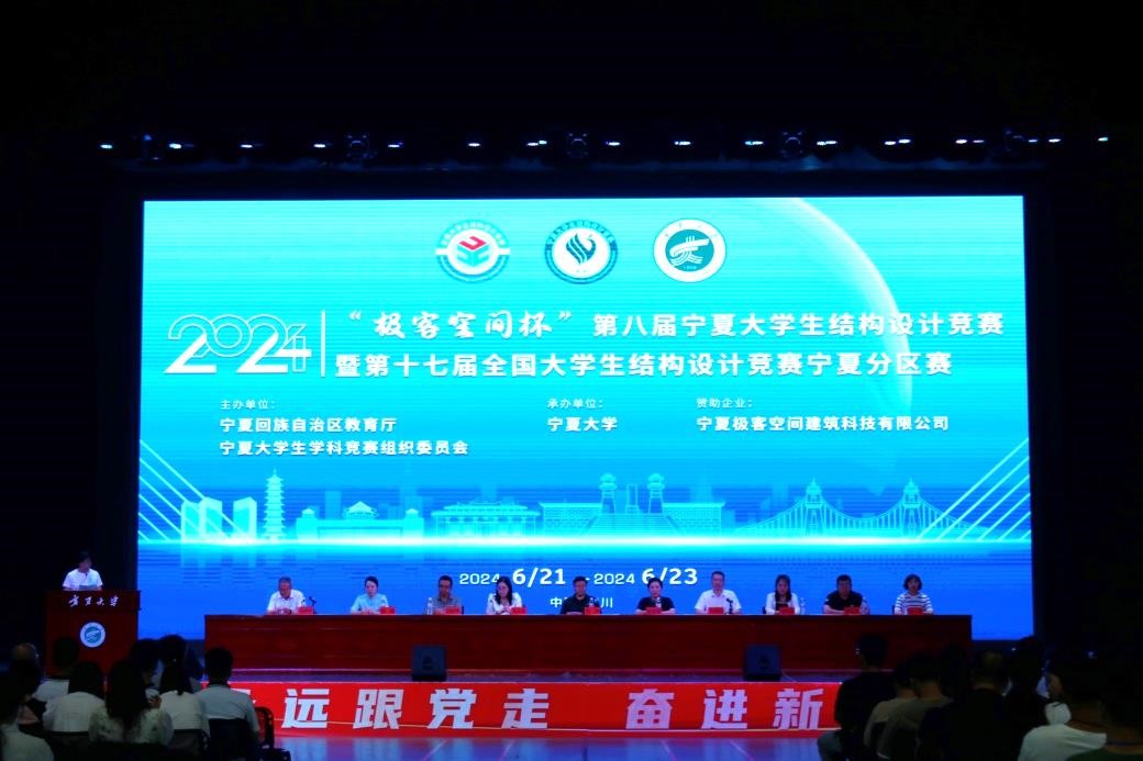 【beat365唯一官方网站新闻中心讯 土木与水利工程学院】6月21日至23日,由宁夏回族自治区教育厅、beat365唯一官方网站生学科竞赛组织委员会主办,beat365唯一官方网站承办的“极客空间杯”第八届beat365唯一官方网站生结构设计竞赛暨第十七届全国大学生结构设计竞赛分区赛在beat365官网大学生活动中心举办。beat365唯一官方网站党委常委、副校长黄河出席开幕式,宁夏建设职业技术学院、银川能源学院、北方民族大学、银川科技学院、宁夏理工学院,以及beat365官网团委、创新创业学院、土木与水利工程学院相关负责人参加开幕式。开幕式由土木工程学院毛明杰院长主持。
