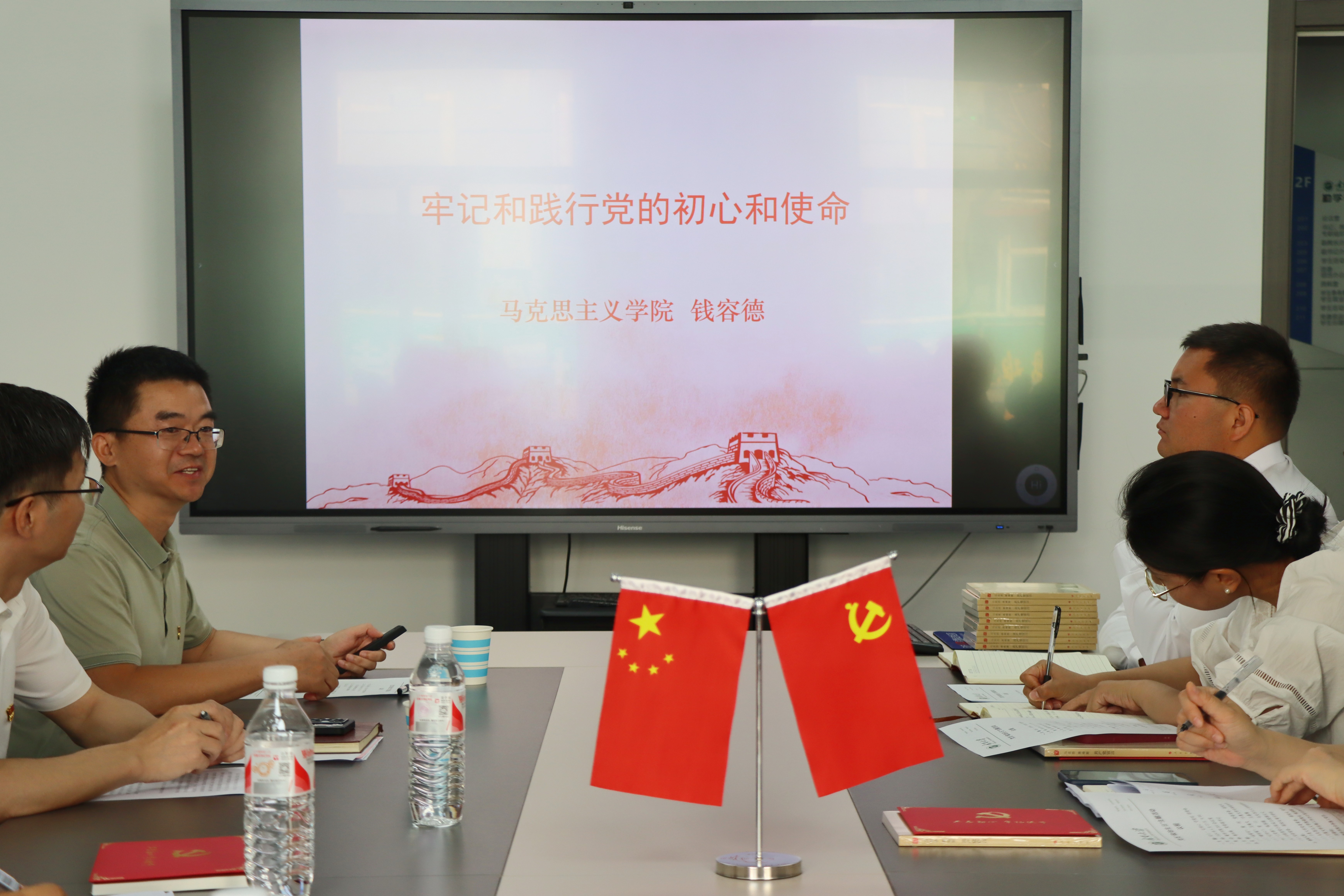 常江、王嘉豫等2位党员代表分享了他们入党的初心及个人成长的体会和感悟,充分表达了对党组织培养的感激和为组织奋斗终身的决心。钱容德作题为《牢记和践行党的初心和使命》的专题党课,从“党的初心和使命是怎么来的、践行党的初心和使命”两个方面,让在场党员深刻认识到了中国共产党因初心而生、为使命而行,崇高的使命始终是激励一代代中国共产党人坚守初心、顽强奋斗的不竭动力。