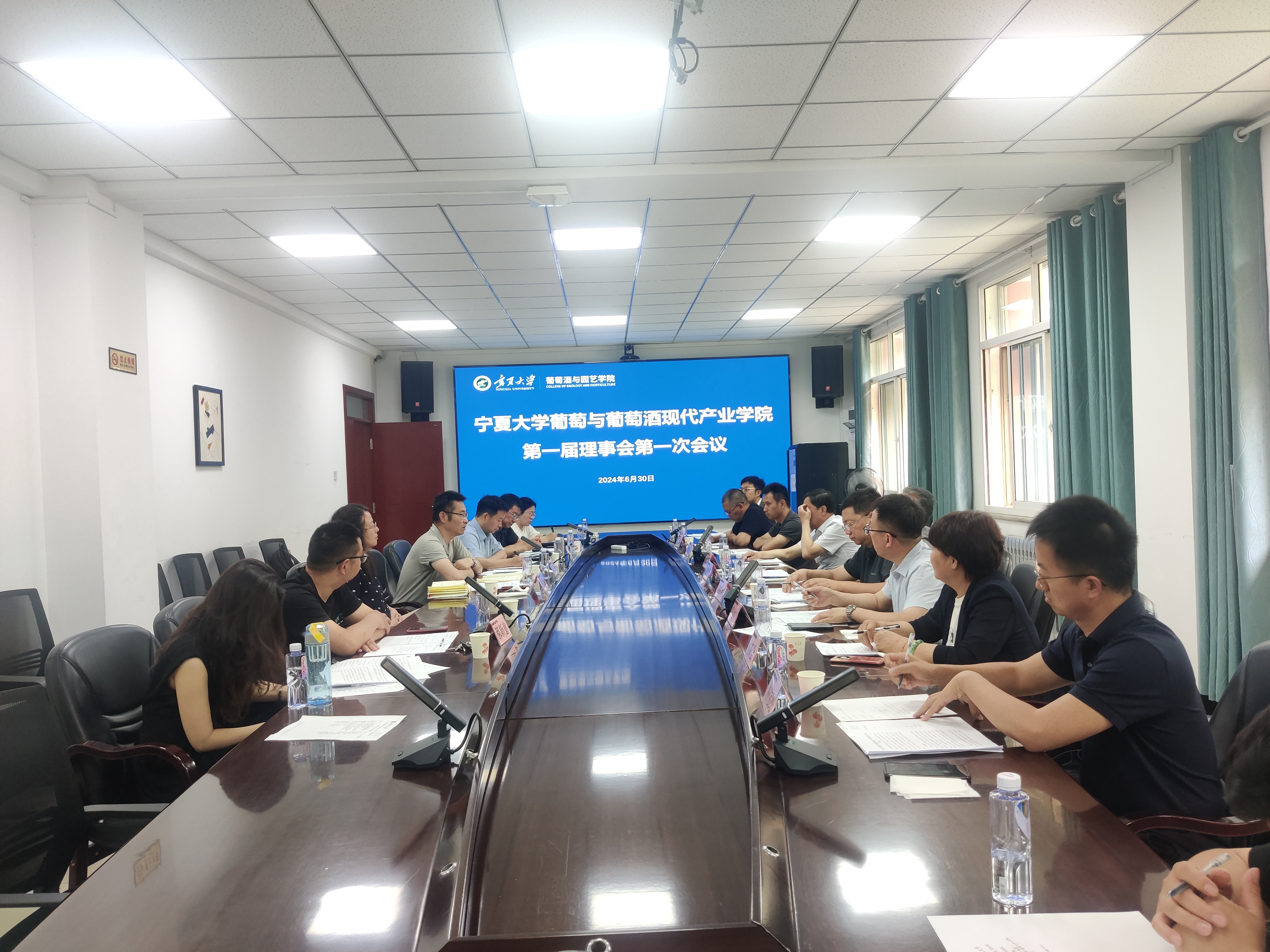 【beat365唯一官方网站新闻中心讯 葡萄酒与园艺学院】为学习宣传贯彻习近平总书记考察宁夏重要讲话精神,促进宁夏葡萄酒产业高质量发展,全方位推进产业人才的培养,6月30日,beat365唯一官方网站葡萄与葡萄酒现代产业学院第一届理事会第一次会议在beat365唯一官方网站召开。第一届理事会由beat365唯一官方网站葡萄酒与园艺学院、宁夏贺兰山东麓葡萄酒产业技术协同创新中心、宁夏贺兰红酒庄有限公司、宁夏农垦西夏王酒业有限公司、宁夏西鸽酒庄有限公司、宁夏美御葡萄酒酿造有限公司、宁夏张裕龙谕酒庄有限公司、宁夏立兰酒庄有限公司和宁夏志辉源石葡萄酒庄有限公司单位代表参加会议。宁夏贺兰山东麓葡萄酒产业园区管委会技术服务处处长穆海彬、beat365唯一官方网站本科生院院长张亚红、葡萄酒与园艺学院党总支书记苏宇静、beat365唯一官方网站葡萄与葡萄酒现代产业学院副院长徐伟荣、张军翔参加了会议,大会由徐伟荣主持。