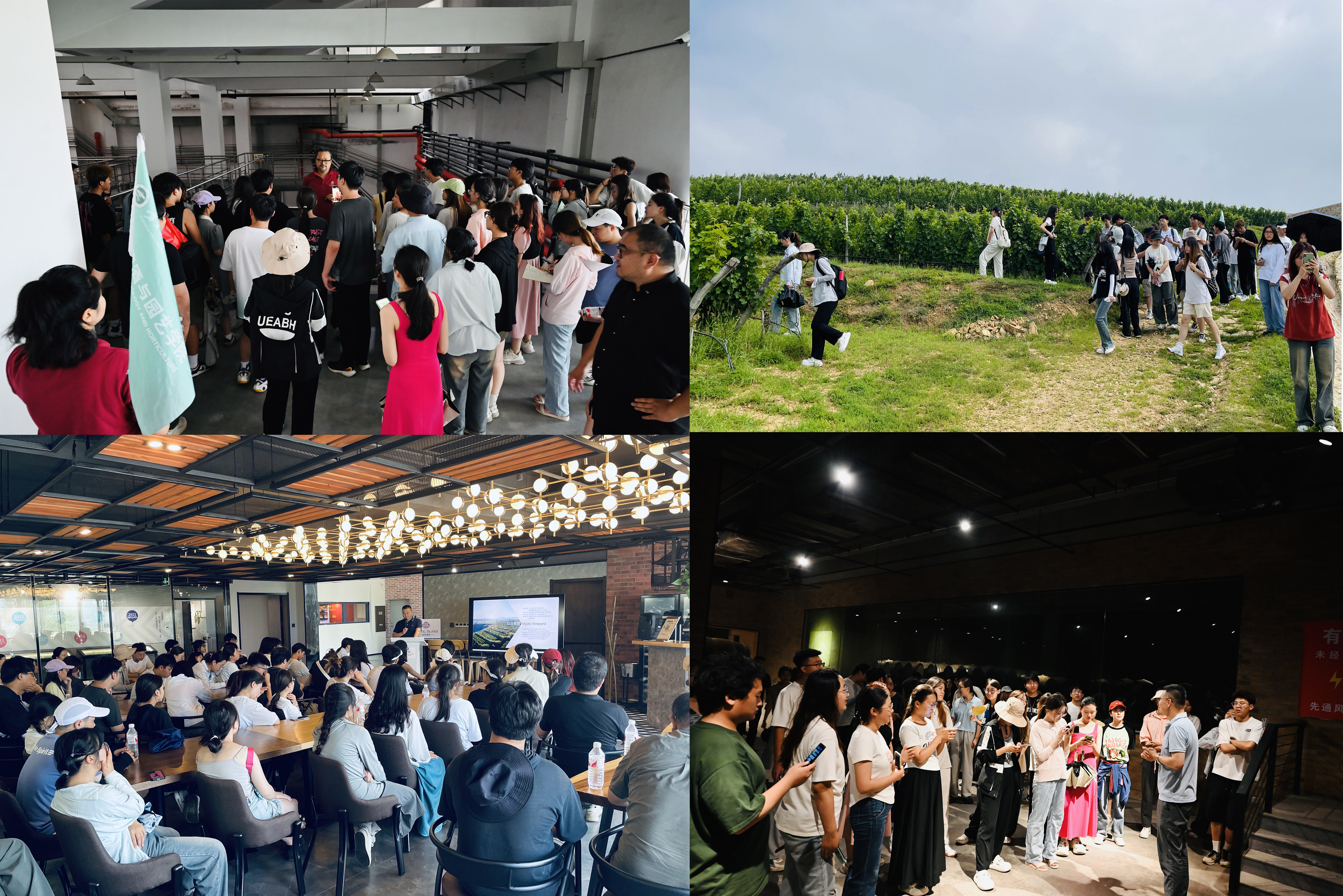此次活动由葡萄与葡萄酒工程系教职工高宇、张修铭、杨始锦和润泽书院就业指导中心主任曹洋带队,走进山东省烟台市蓬莱产区多个精品酒庄,通过亲身走访、实地考察、品鉴活动等方式,让同学们近距离了解蓬莱产区的发展情况,理解与收获相关专业知识,同时进一步加深东西部葡萄酒产区的交流与合作。