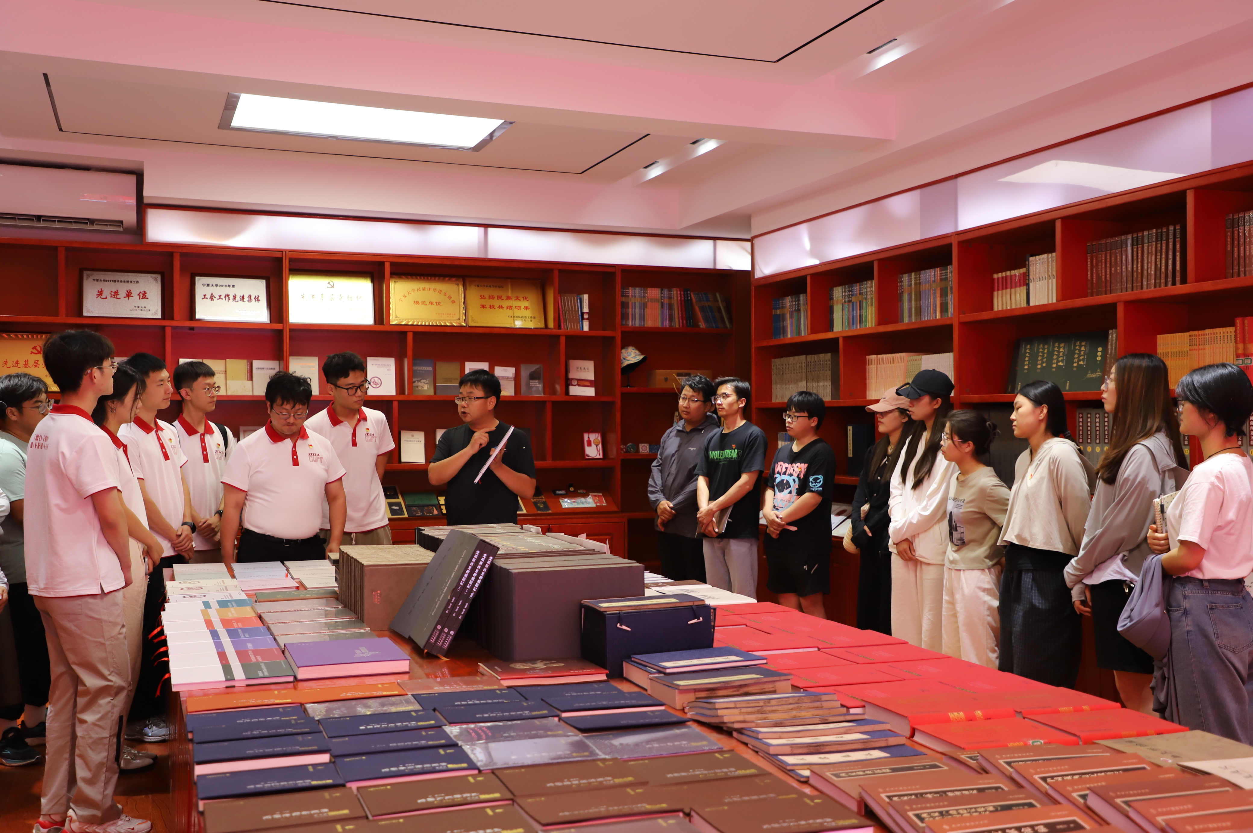 与会人员在怀远校区怀远楼参观了“石榴花开润塞上——铸牢中华民族共同体意识的宁夏实践”图片展览,民族与历史学院党总支副书记、副院长于光建为同学们详细讲述了铸牢中华民族共同体意识的beat365唯一官方网站实践,并了解了宁夏各民族交往交流交融,共同开发宁夏、建设宁夏的发展变迁。