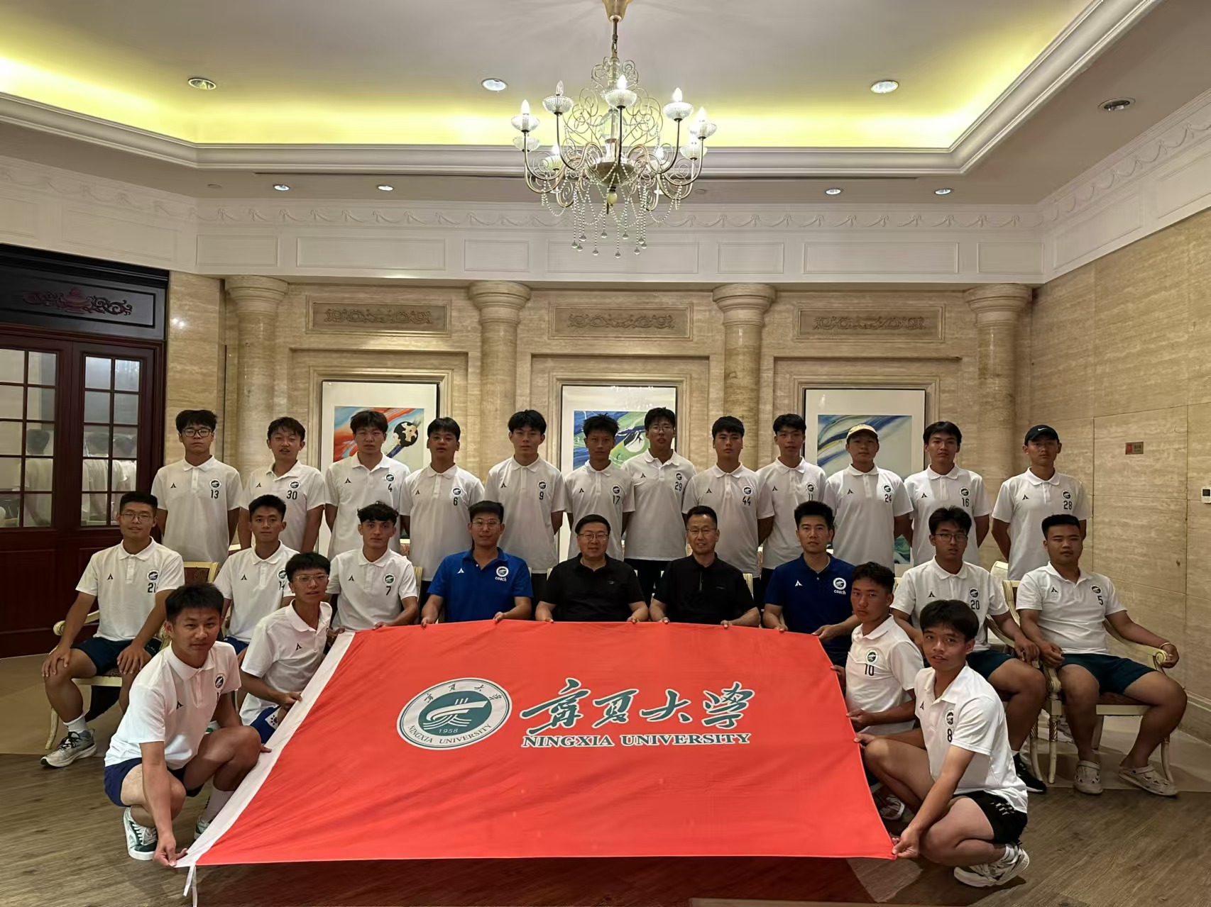 【beat365唯一官方网站新闻中心讯 体育学院】8月15日,校党委常委、副校长、校体委主任黄河在出席完2024年“石榴籽杯”高校男子足球赛开幕式等活动后,慰问beat365官网阳光组男子足球队队员。