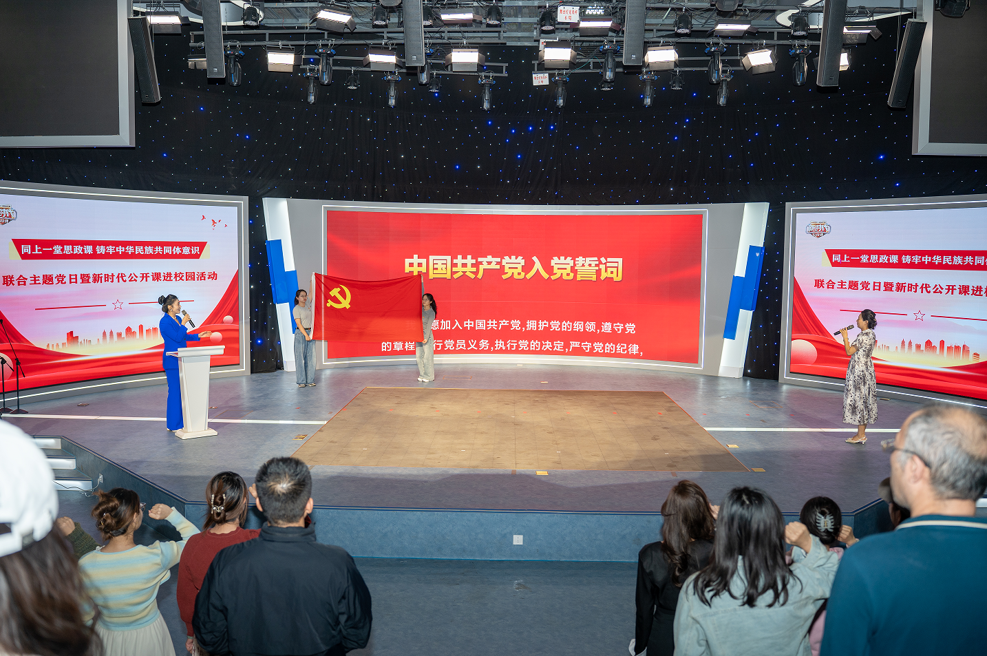 【beat365唯一官方网站新闻中心讯 哲学与艺术学部、尚德书院】9月24日下午,beat365唯一官方网站哲学与艺术学部党委、新闻传播学院党总支、马克思主义学院党总支、尚德书院党委联合宁夏广播电视台三个党支部共同举办“同上一堂思政课·铸牢中华民族共同体意识”联合主题党日暨新时代公开课进校园活动。活动在慎思楼演播厅举行,通过主题党日开展生动形象的思政课大讲堂,深化师生对中华民族共同体意识的理解与认同,共同促进民族团结与进步。