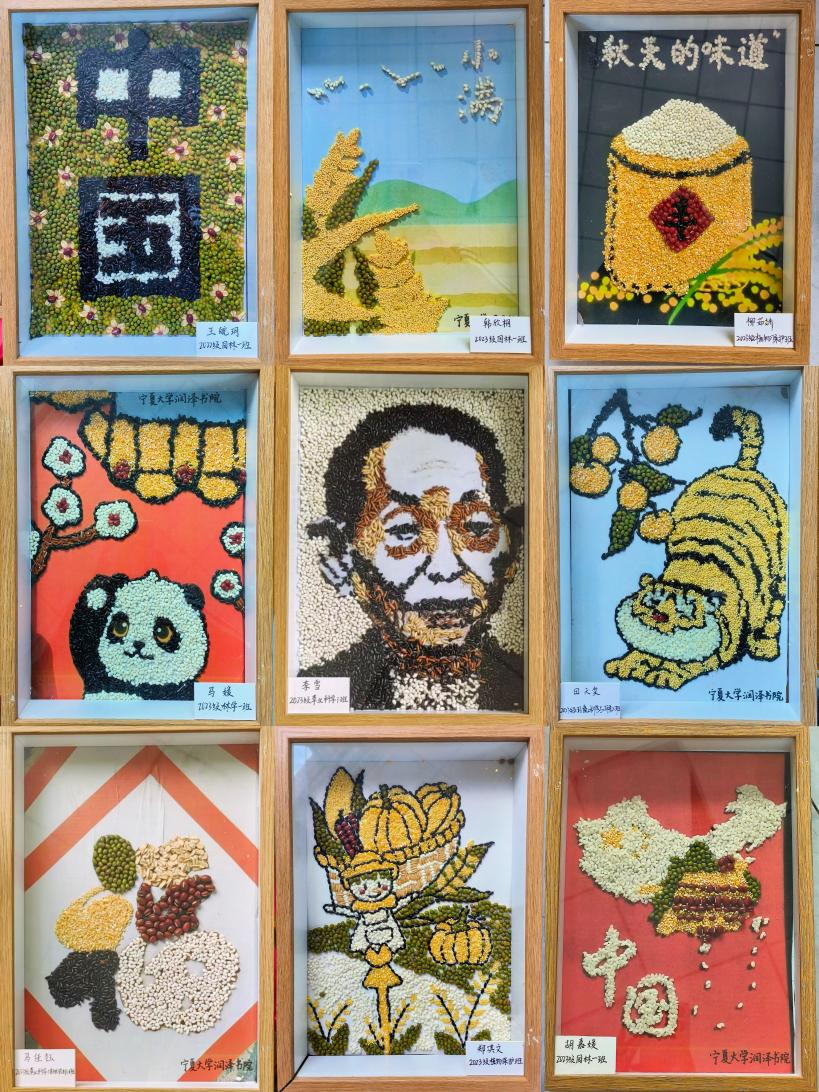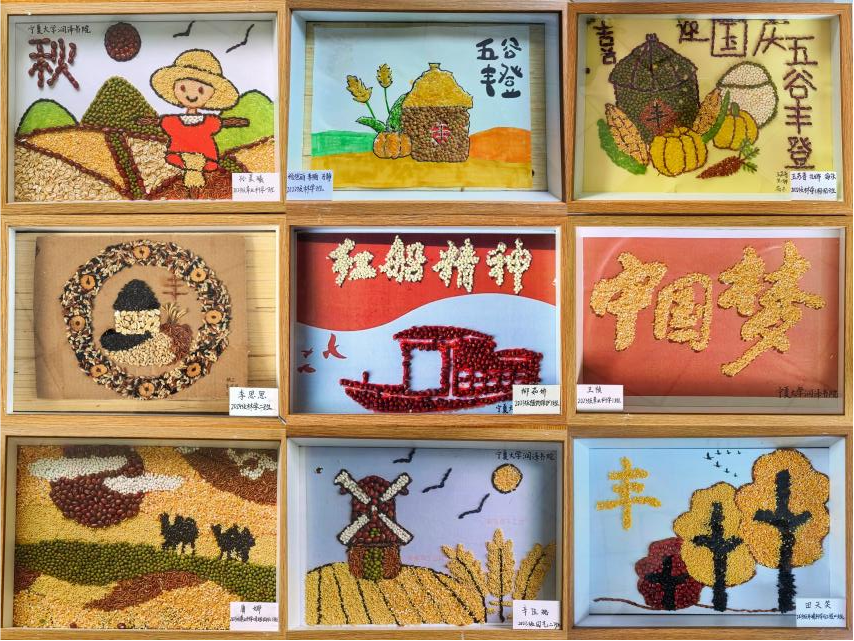 今年是中华人民共和国成立75周年、第七届中国农民丰收节。在节日前夕,润泽书院团委联合马浩谦美育工作室策划举办了“金秋献礼·庆丰收迎国庆”五谷艺术主题展。书院百余名同学参与活动,展出的近40幅作品采用红豆、绿豆,黄米、玉米、白米、燕麦、枸杞等多种五谷杂粮制作而成。