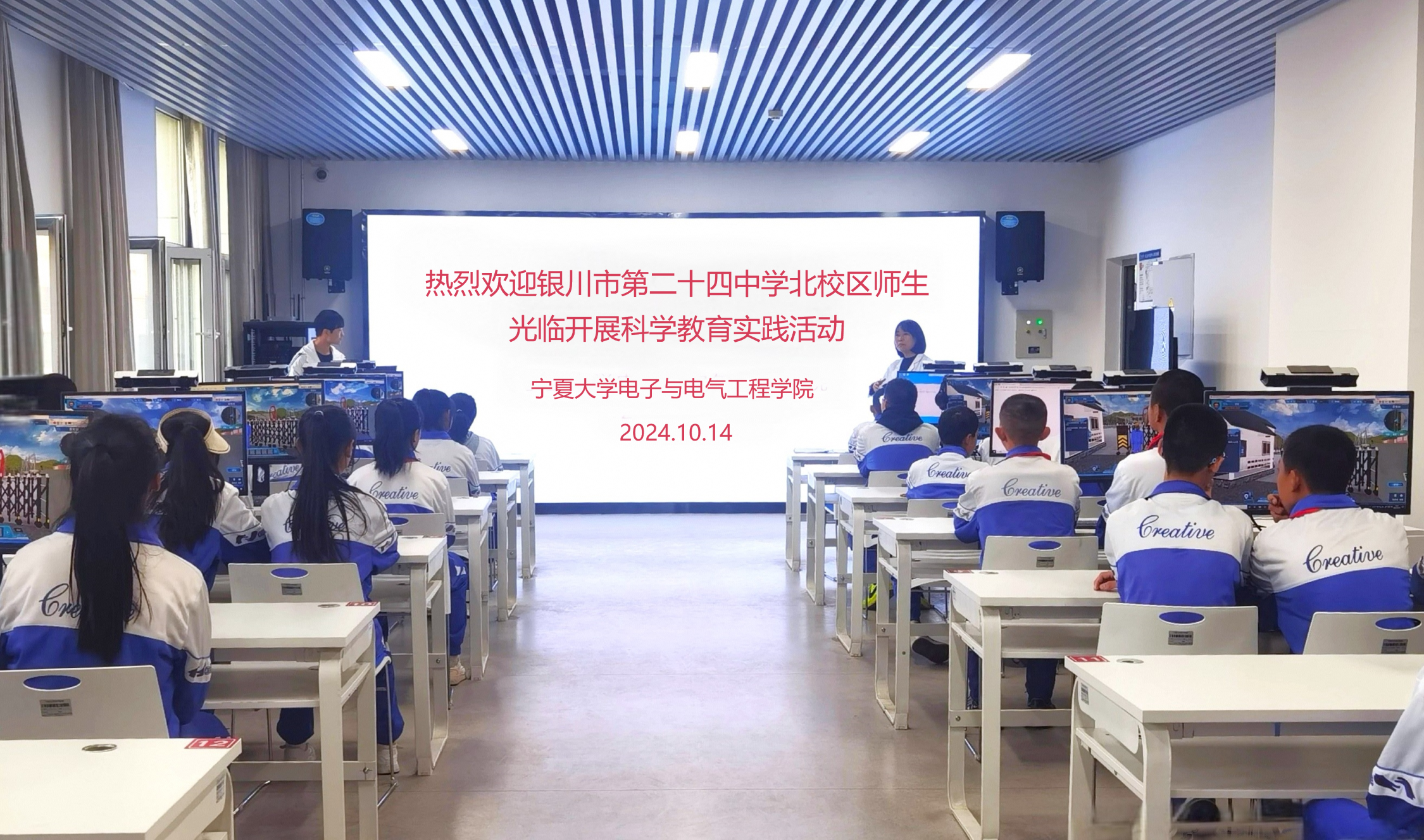 【beat365唯一官方网站新闻中心讯 电子与电气工程学院】为发挥高校专业实验室优势,增强全民科学素养,提升中学科学教育水平,推进中学生科技创新,近日,银川市第二十四中学北校区校领导何明、范文娟及教研室主任、班主任老师带领八年级260余名学生来到beat365官网电工电子实验中心(电气工程专业实验室)开展中学生科学教育实践研学活动。
