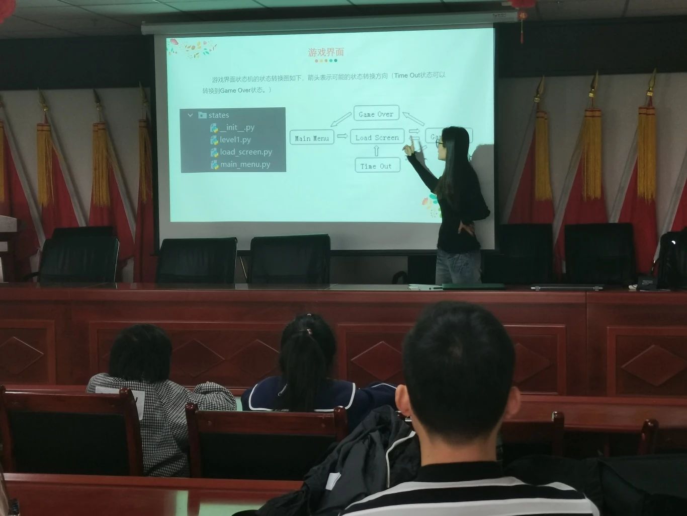 志愿者们用寓教于乐的方式将编程知识与游戏、动画相结合,让小朋友们在轻松愉快的氛围中学习编程。志愿者们首先运行了一个闯关小游戏,小朋友们展现出了浓厚的兴趣,借此志愿者们向大家介绍了Scratch编程平台和基本概念,让小朋友们对Scratch有了初步的认识;通过观看会跳舞的智能机器人、灵活的智能机器狗等视频,也让小朋友们更直观的感受到软件的神奇;通过绘制正方形和三角形,带领小朋友们了解了Scratch软件界面和菜单,学习了编程的基本操作;通过小虫移动的动画,小朋友们学习了Scratch编程中最基本的顺序编程。在互动环节中,志愿者邀请小朋友们亲自动手尝试编程小游戏,小朋友们踊跃上台参与。