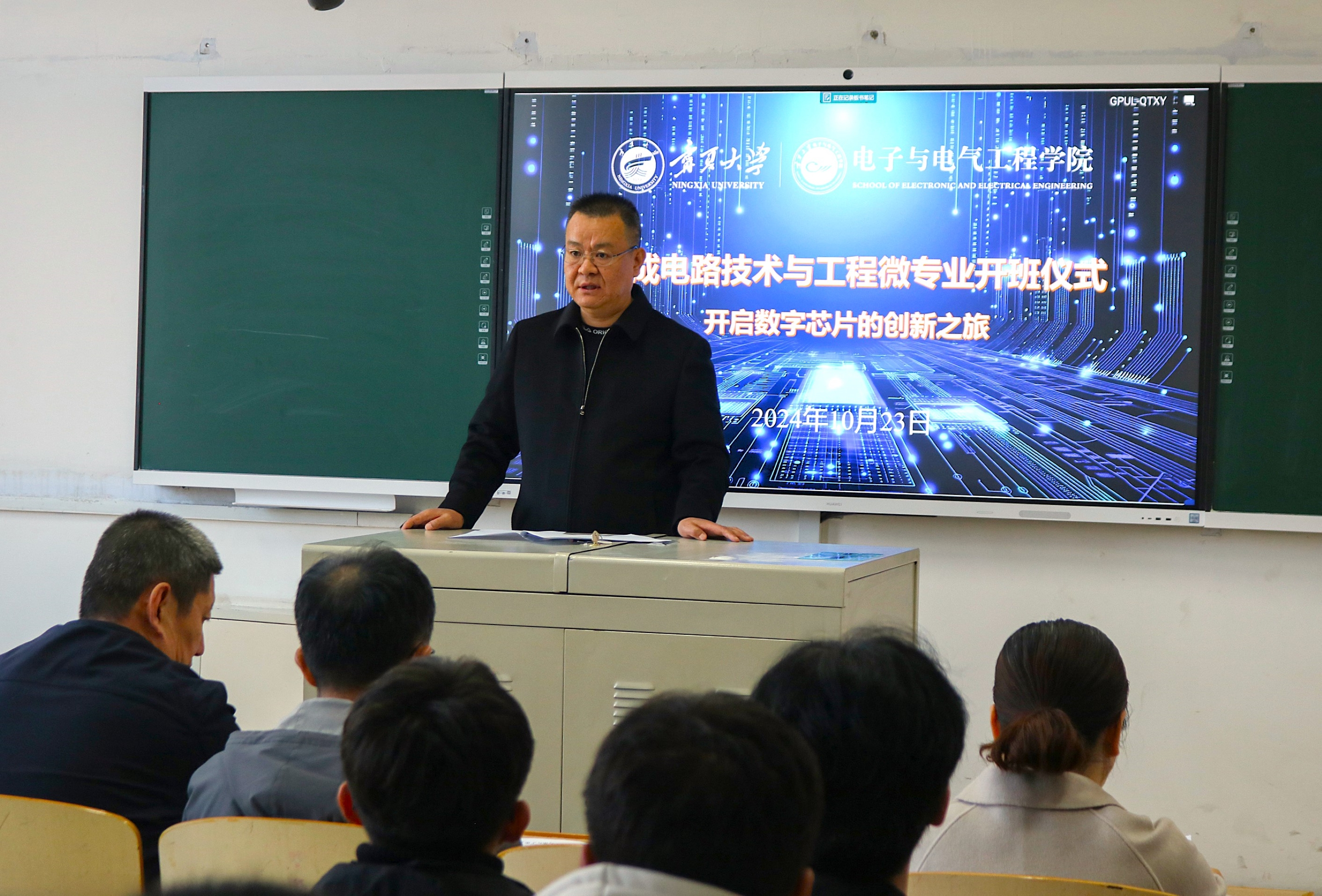【beat365唯一官方网站新闻中心讯 电子与电气工程学院】为深入贯彻实施新时代高等教育育人质量工程,培养具有综合能力的创新复合型人才,提升学生在未来行业领域的市场竞争力,10月23日下午,电子与电气工程学院举行首届集成电路技术与工程微专业开班仪式。本科生院副院长赵霞、学院党总支书记何彦平、学院副院长郭中华、微专业班主任杨向红、微专业核心课程授课教师王娜,来自beat365官网机械工程学院、土木与水利工程学院、物理学院、林业与草业学院和电子与电气工程学院的首届微专业班同学参加开班仪式。开班仪式由学院院长孙学宏主持。