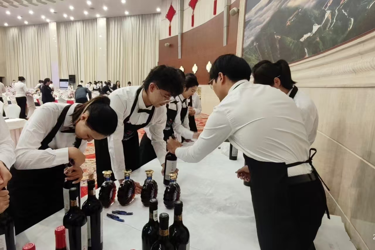 为向中国——中亚合作论坛欢迎晚宴及贺兰山东麓葡萄酒品鉴会活动提供专业的侍酒服务,润泽书院葡萄酒与园艺研究生党支部、本科生党支部于10月23日至24日集中进行侍酒礼仪集训,35名党员、发展对象、积极分子参与本次活动。同学们发挥了专业细致周到的侍酒服务水平,保证活动各环节井然有序,出色的完成了任务,展现出宁大学子的有理想、敢担当、能吃苦、肯奋斗的新时代精神,同时传达了宁大青年人执着专注、精益求精、一丝不苟、追求卓越的职业素养精神,为此次活动顺利开展贡献了青年力量,受到活动主办方的一致好评。