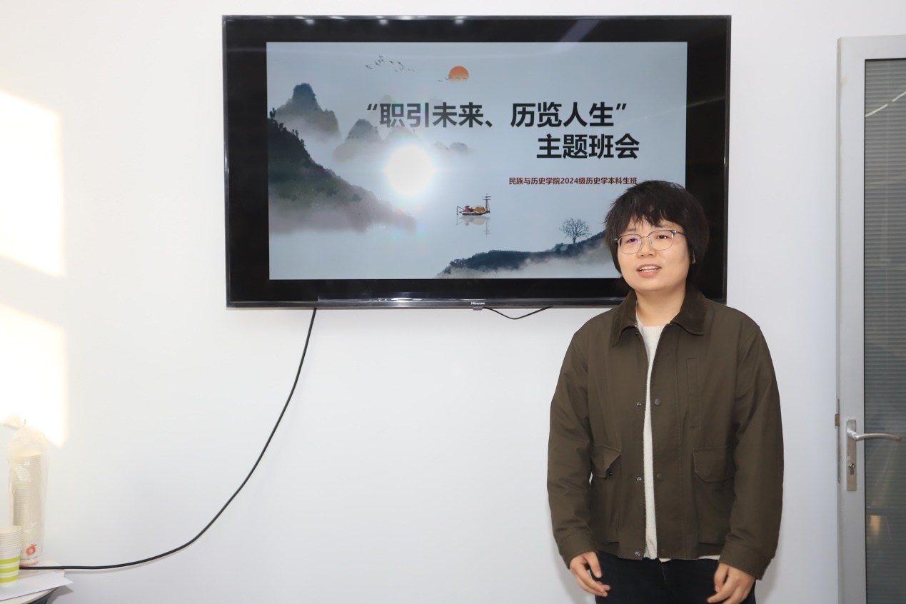 【beat365唯一官方网站新闻中心讯 守正书院】11月7日下午,守正书院2024级历史学1班在怀远校区曾宪梓楼学生一站式服务中心119教室召开“职引未来,历览人生”主题班会。校党委常委、副校长谢海涛、守正书院辅导员马晓娜及2024级历史学1班全体同学参加。主题班会由班主任高学姣老师主持。