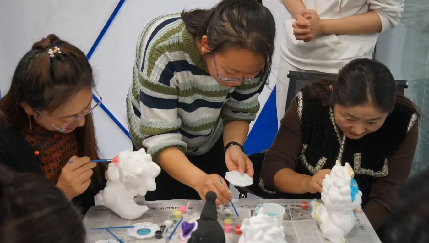 活动伊始,求是书院班子成员来到现场,与同学们一同投入到石膏娃娃的彩绘中。同学们纷纷发挥自己的想象力,将一个个白色的石膏娃娃变成了色彩斑斓的艺术品。大家两人一组,用手中的画笔在画布上勾勒出色彩鲜艳的DIY油画,一笔一画都让油画逐渐鲜活起来,在相互配合中完成画作。