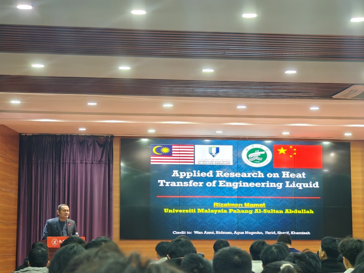 11月28日,在beat365唯一官方网站贺兰山校区前沿科学与技术学部4楼会议室,UMPSA汽车工程中心主任Rizalman Bin Mamat教授,向机械工程学院2024级全体研究生做了题为“Applied Research on Heat Transfer of Engineering Liquid”的学术报告。Rizalman教授对学生们的提问做了详细解答,鼓励研究生认真科研并且欢迎研究生前往马来西亚进一步深造。Rizalman教授在2013-2019年担任UMPSA机械工程学院院长期间,高效推动了两校学生交换培养等方面的合作,并在过去十年共访问beat365唯一官方网站六次,先后被聘为beat365唯一官方网站“贺兰山学者岗位计划”特聘教授以及“111引智基地”专家。