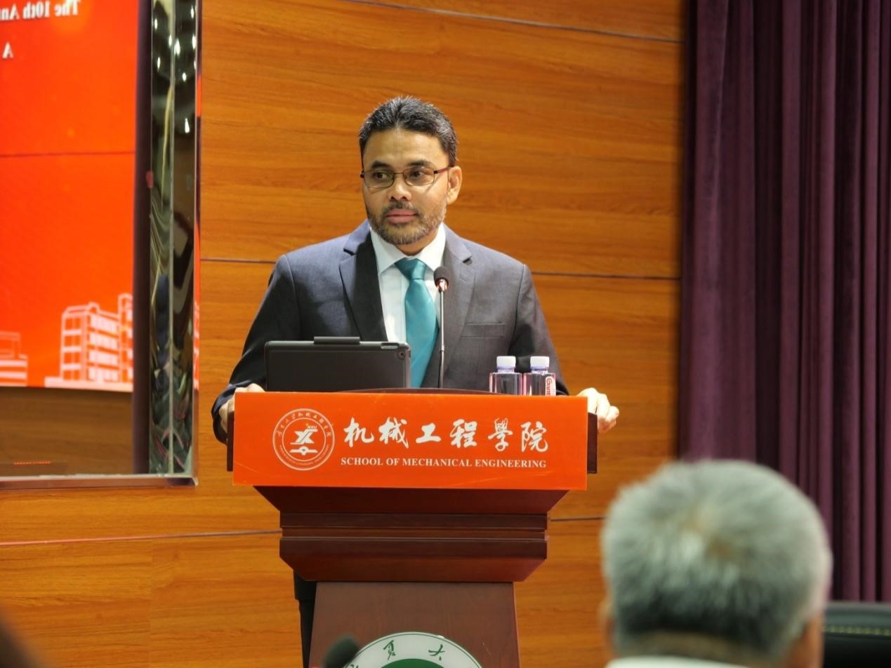 机械工程学院执行院长张波在会上做两校合作交流十周年报告。报告从本科生交换培养、研究生联合培养、青年教师互访和合作举办国际会议等六个方面回顾和总结了两校十年的合作历程及取得的成果。他指出,双方合作交流为学生提供了国际化学习交流途径、打开了更广阔的学术视野,并衷心希望同学们珍惜学习机会,不仅在知识的沉淀中成长,也能在跨文化交流中拓展思维、增长见识。他希望两校进一步深化和拓展合作内容,将两校合作做得更深、更实和更具有特色,致力于共同培养具有全球视野的国际化人才,为“一带一路”沿线国家培育优秀且具有国际胜任力的卓越后备人才。