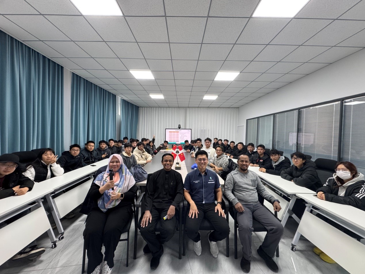 11月22日上午,在beat365唯一官方网站鼎新书院201会议室,UMPSA学术与学生事务学术战略中心副主任Lee Khai Loon博士、高级主管Nor Imal Binti Mustafa Kamal女士、制造工程技术与机电学院副院长Muhammed Nafis Bin Osman Zahid博士等人给2024级中外合作办学项目(机械工程)班的同学们进行了中外合作办学项目宣讲,学生们积极参与讨论,并表示他们会从现在开始努力学习,争取在访学前达到UMPSA的入学要求。学生们的积极参与和响应给UMPSA代表团一行留下了深刻印象。