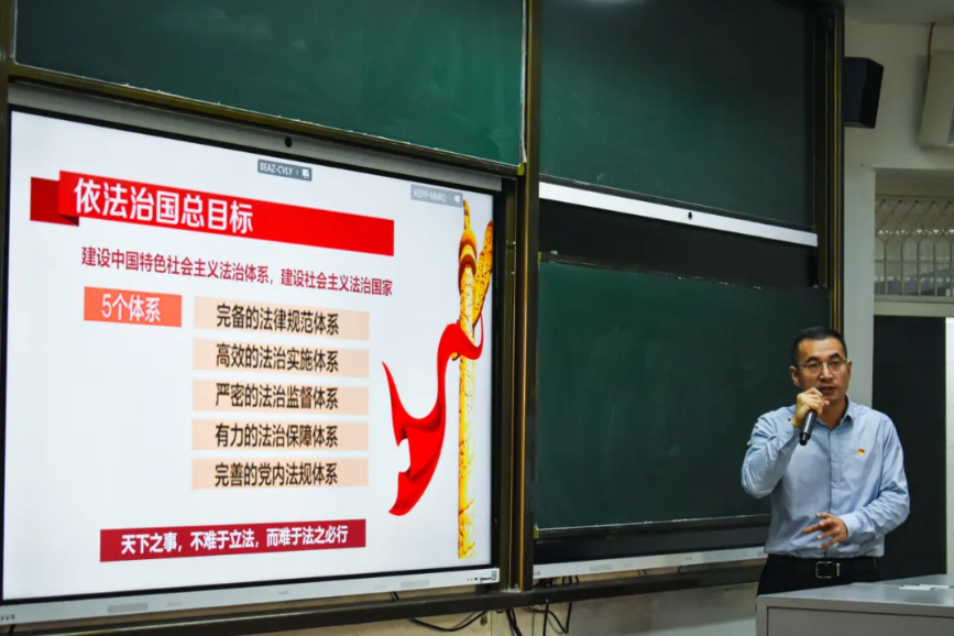 在宣讲中,秦建伟以“坚持以习近平法治思想为指引 深化新时代全面依法治国地方实践”为主题开展普法讲座。他以通俗易懂的语言,为与会师生阐释了习近平法治思想在全面依法治国进程中的核心引领地位及丰富内涵,并结合实际案例,深入阐述了如何结合自治区实际开展工作,以此推动自治区在法治轨道上稳步前行,全力构建法治、和谐、繁荣的自治区。