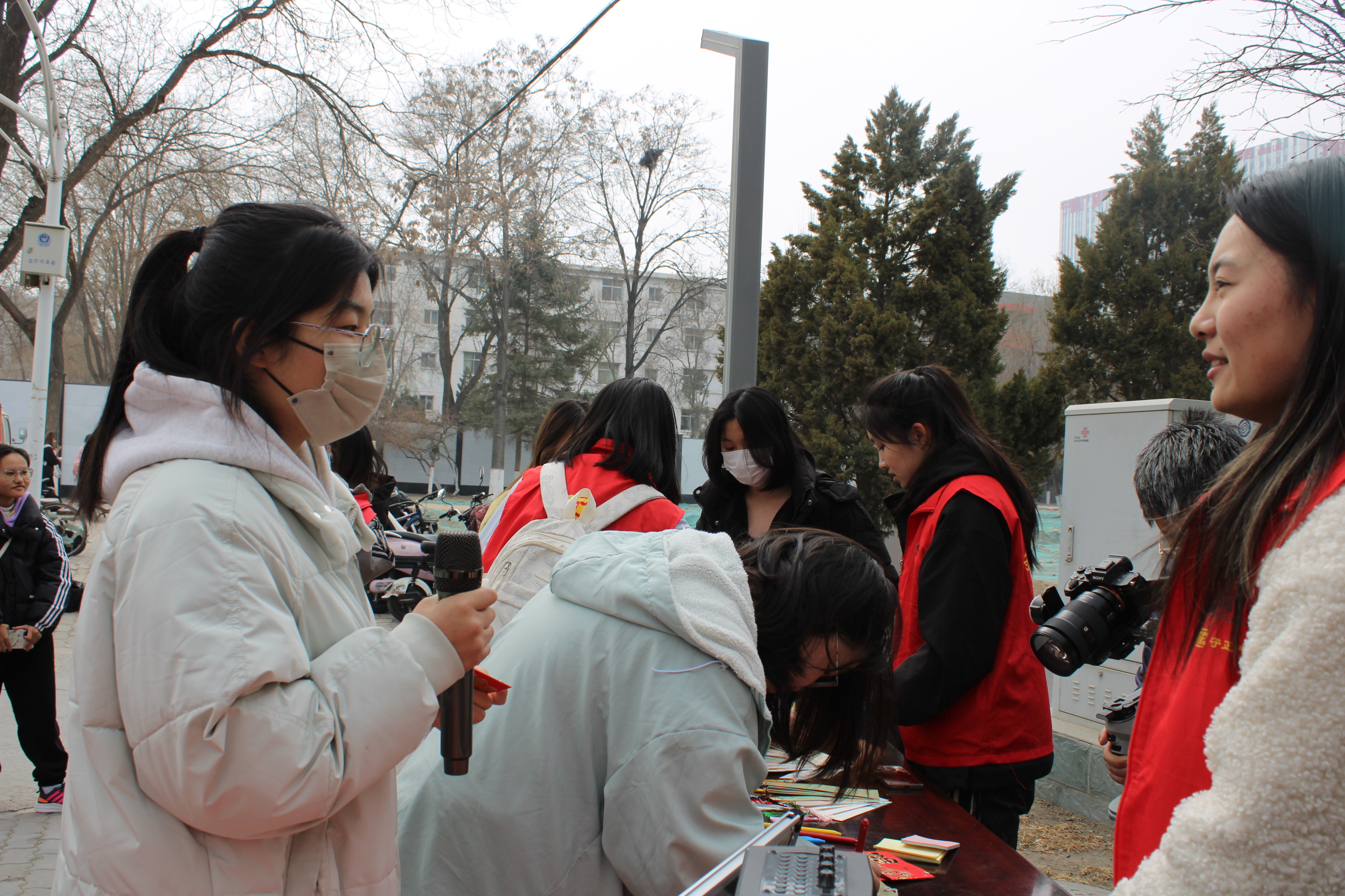 “盲盒+志愿”的形式,吸引了同学们的目光。现场同学通过抽取内含“吹响‘锋’号”、“聆听‘锋’音”、“传递‘锋’爱”任务的红包盲盒,分享志愿故事,领取雷锋书签。一位同学动情讲述道:“雷锋是我的学习榜样,他的点滴善举让我感动,我也愿用行动传递温暖。”