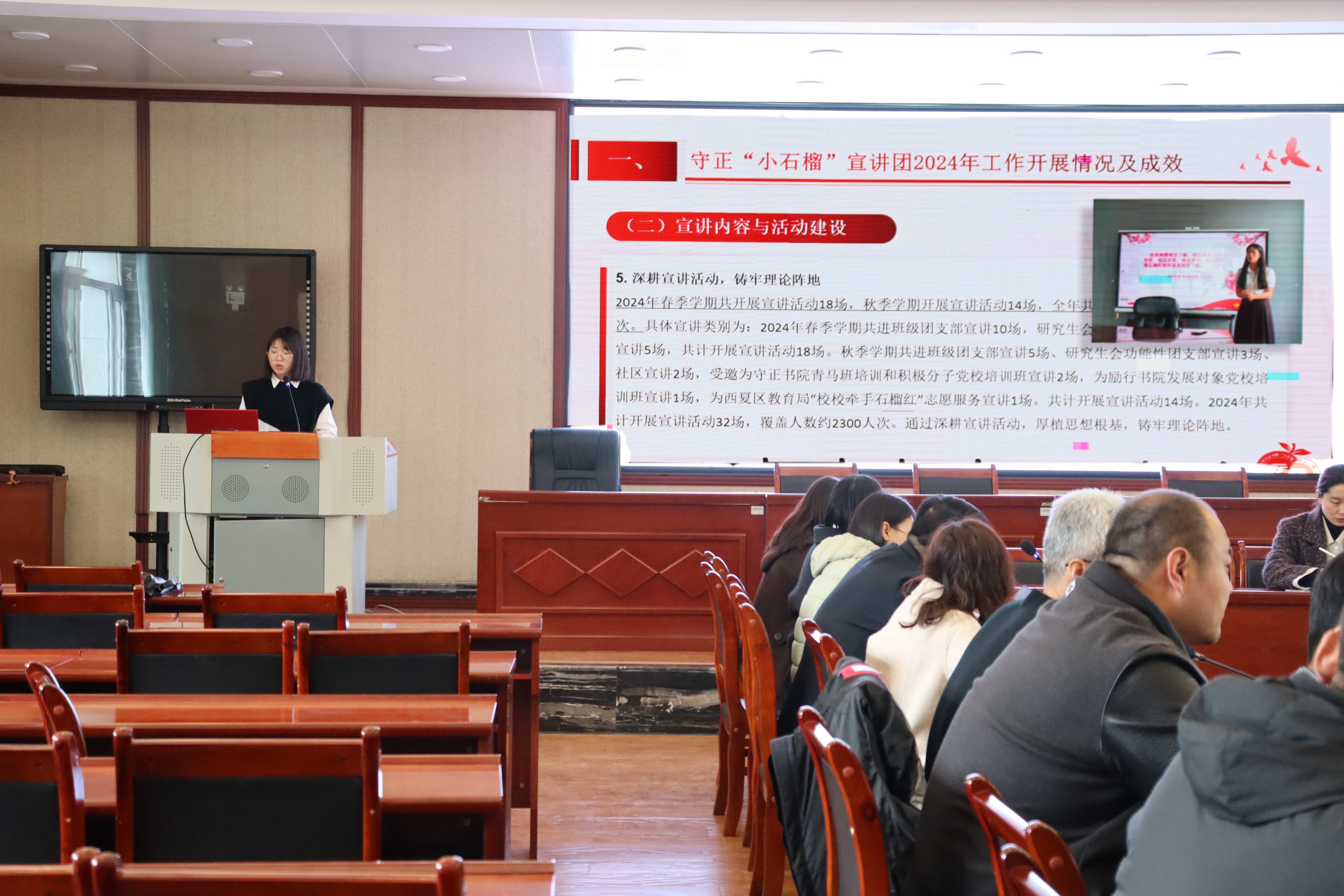 书院党委书记闫蓉指出,“小石榴”宣讲团要扎根时代沃土,紧密围绕国家发展战略和社会热点,深挖宣讲素材,让每一次宣讲都成为传递时代强音的窗口,希望大家以此次会议为新起点,凝心聚力、开拓创新,让“小石榴”宣讲团在2025年绽放更加耀眼的光彩,为书院文化建设和社会思想引领贡献更大力量。