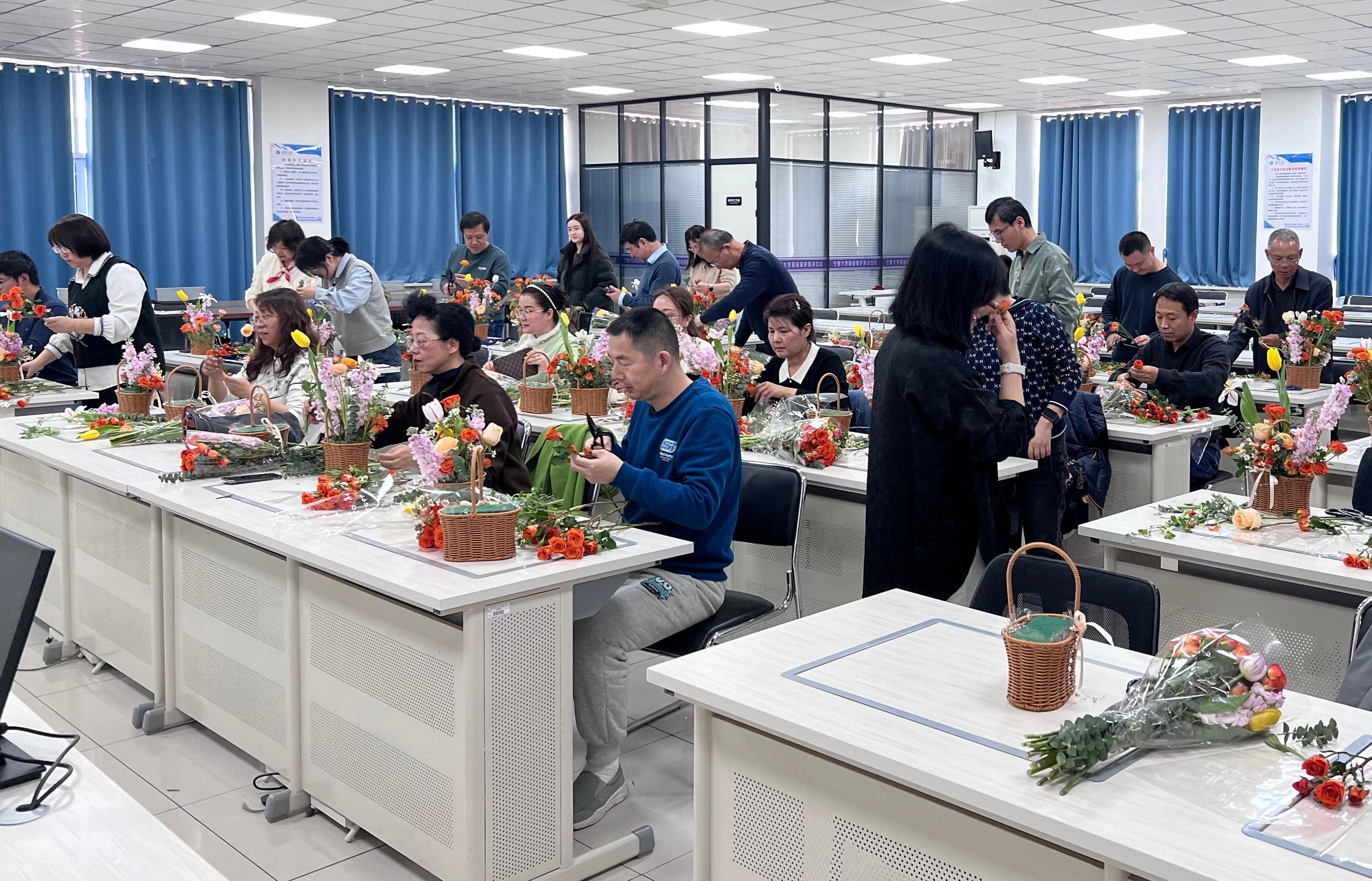 【beat365唯一官方网站新闻中心讯 信息工程学院】为庆祝第115个“三八”国际劳动妇女节,丰富教职工精神文化生活,3月7日下午,信息工程学院分工会精心策划的“指尖生春色,匠心绽芳华”主题插花沙龙活动在学院举办。全院教师齐聚一堂,以花为媒、以艺会友,在花香与欢笑中共度春日美好时光。