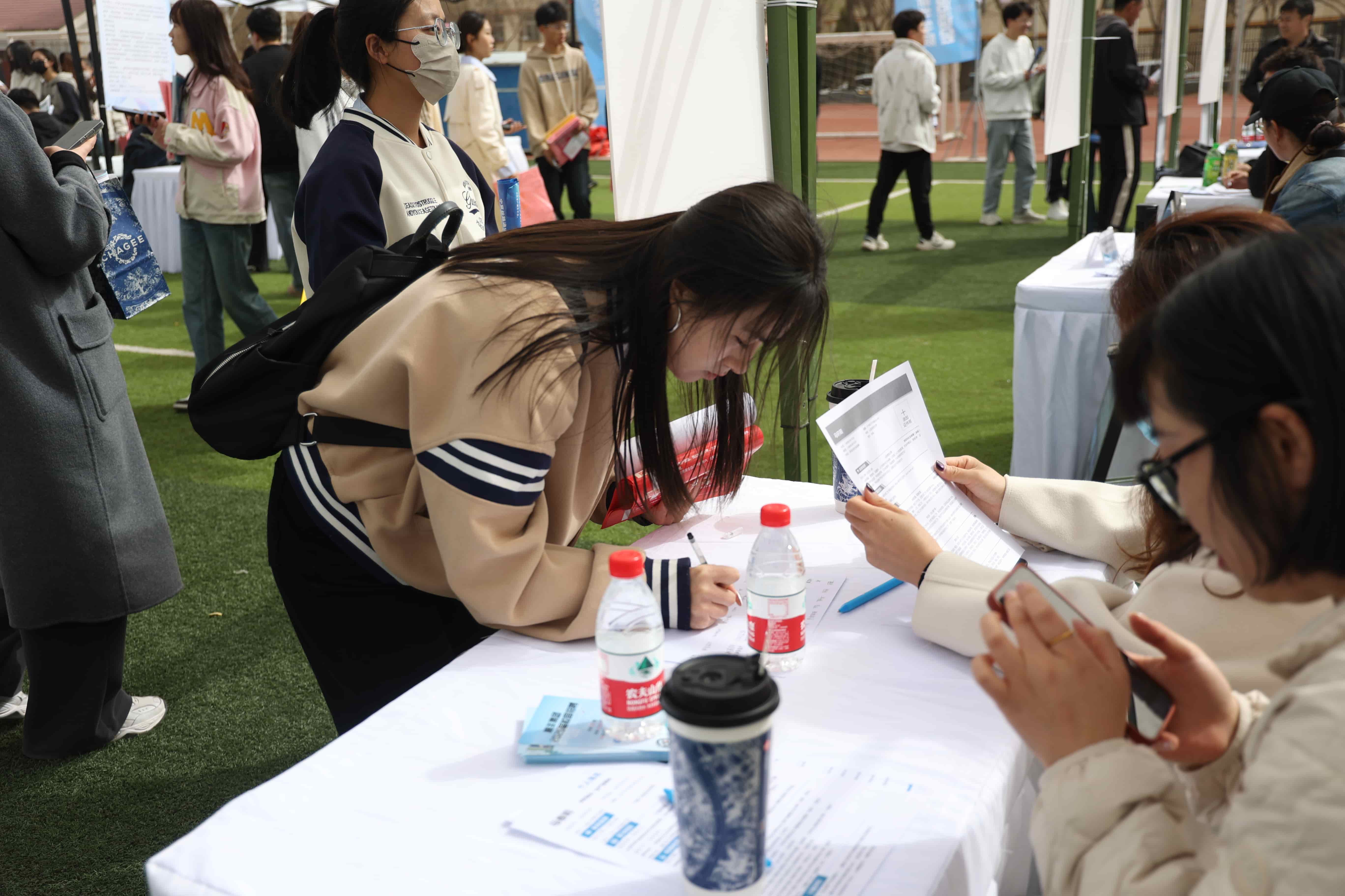 学生志愿者全程引导,为用人单位来院招聘提供热情服务,为毕业生迎战春招加油赋能。同时提供面试教室,为毕业生顺利签约提供保障。