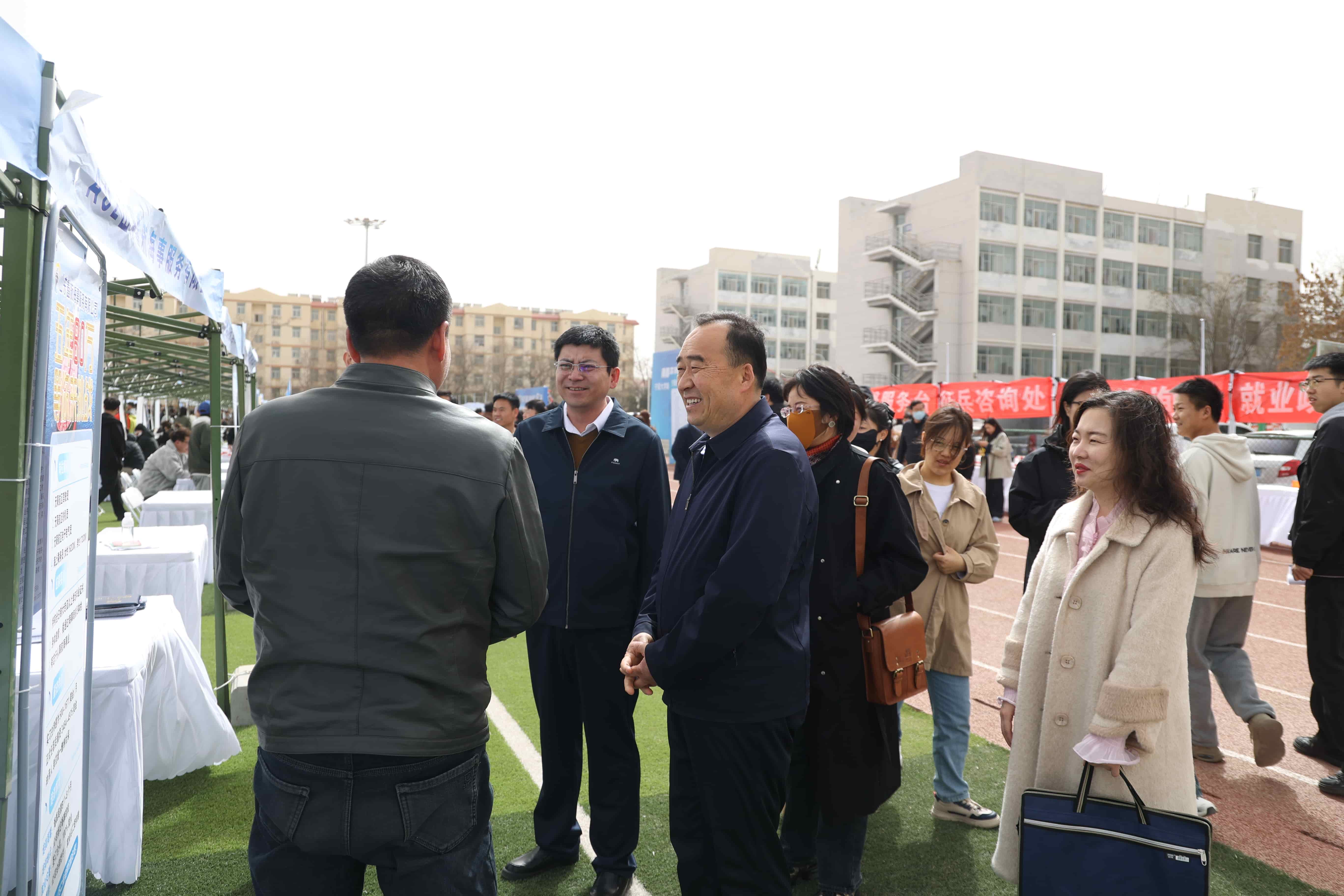 【beat365唯一官方网站新闻中心讯 新华学院】3月26日,由银川市西夏区人才服务中心、银川市西夏区人力资源和社会保障局、beat365唯一官方网站新华学院联合举办的2025届毕业生春季双选洽谈会在中心区运动场顺利举行。西夏区党委组织部副部长、人才服务中心主任王丽,自治区大中专毕业生就业服务中心夏枫及自治区团委相关单位负责人来到现场,学院党委副书记、常务副院长罗进德陪同与用人单位、求职学生面对面交流。
