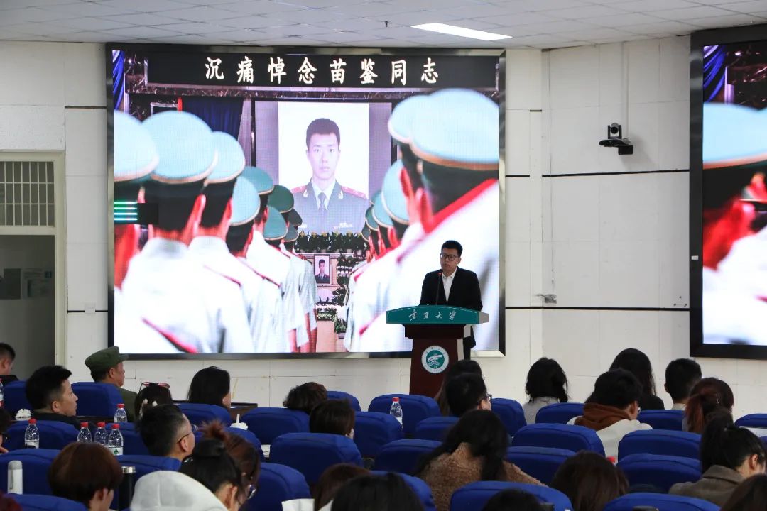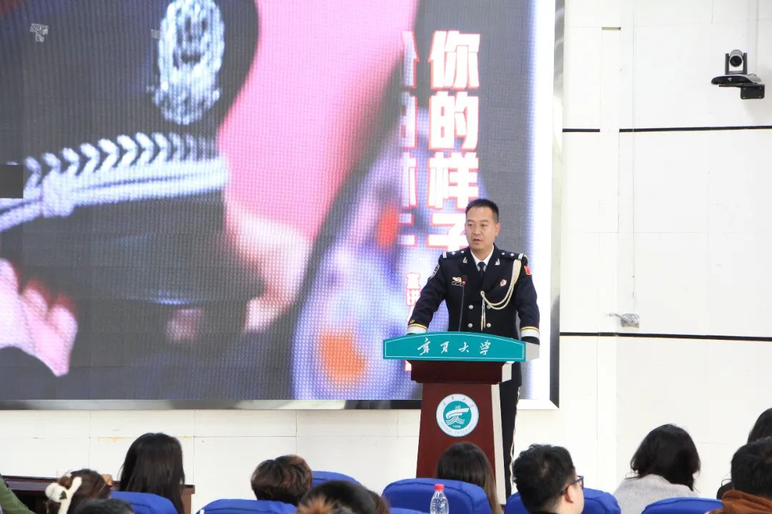吴忠市老兵宣讲团成员张广升、吴忠市公安局特警大队干警王源、苗鉴烈士弟弟苗麒、武警宁夏总队某部中士李小彤、武警宁夏总队某部副大队长丁光耀通过图文展现、英烈故事、影像记录的方式深度还原了战斗英雄顾金海、吴忠市公安局孙家滩分局局长王大为烈士、武警宁夏总队某部苗鉴烈士的感人事迹。现场师生掌声雷鸣,无一不被英烈事迹所感动。