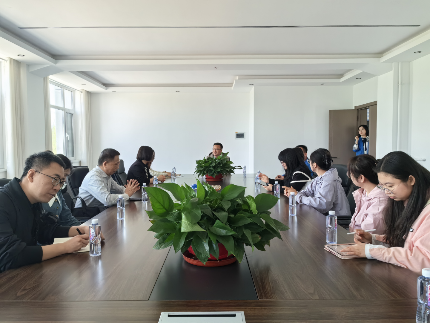 校企双方就人才培养进行了深入探讨。苏建宇详细介绍了学院的学科建设、专业特色及2025届毕业生情况,希望通过加强校企合作,实现优势互补、资源共享,共同为学生搭建高质量就业平台的愿景。企业负责人介绍了企业发展历程和人才需求,高度认可学院毕业生的专业素养和实践能力,期待与学院建立长期稳定的合作关系。