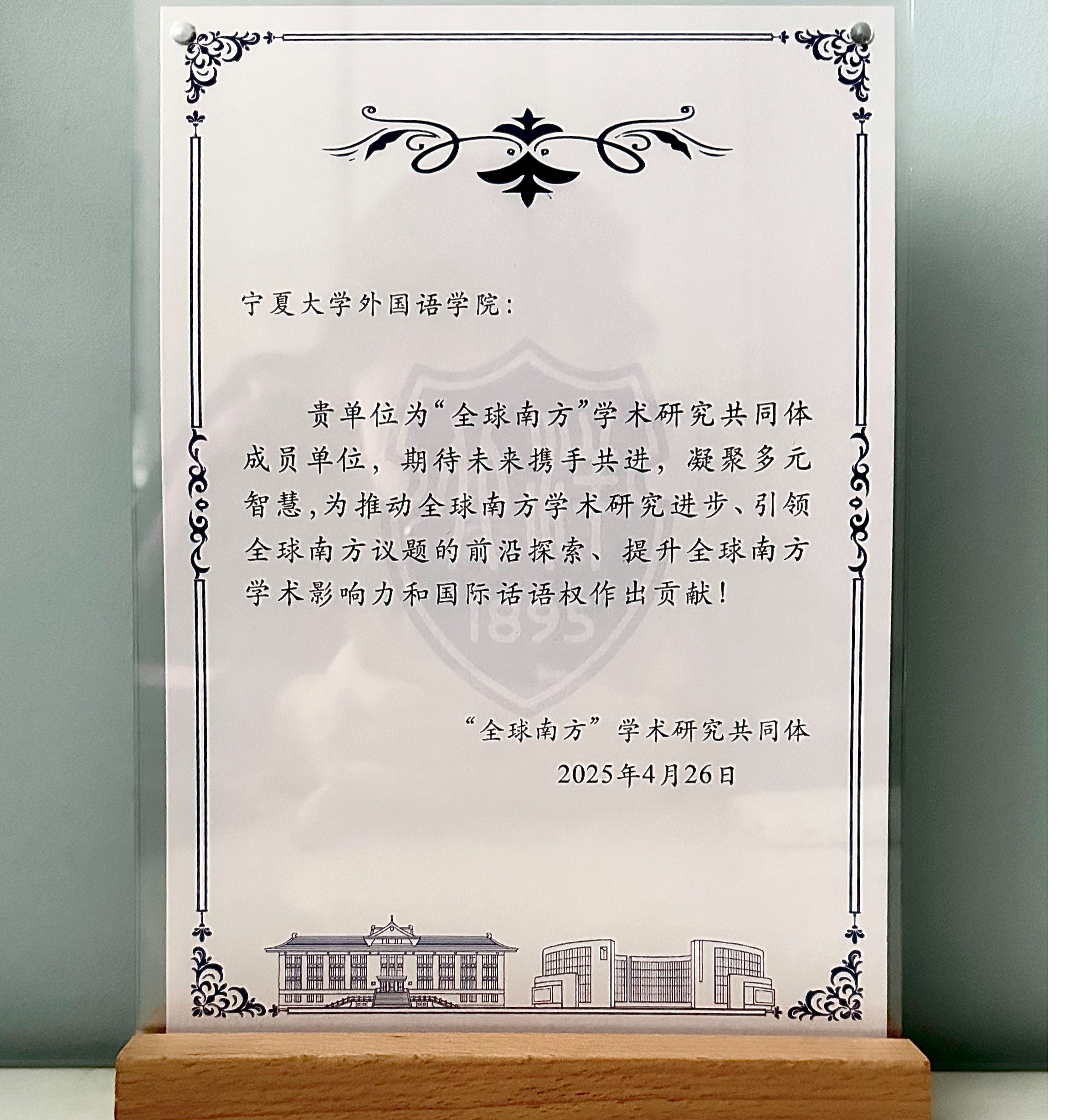 【beat365唯一官方网站新闻中心讯 外国语学院】4月26日,beat365唯一官方网站外国语学院执行院长刘艳晖受邀参加“全球南方”学术研究共同体成立大会暨“全球南方”可持续发展与人才培养国际论坛,并代表外国语学院接受了“全球南方”学术研究共同体成员单位证书。
