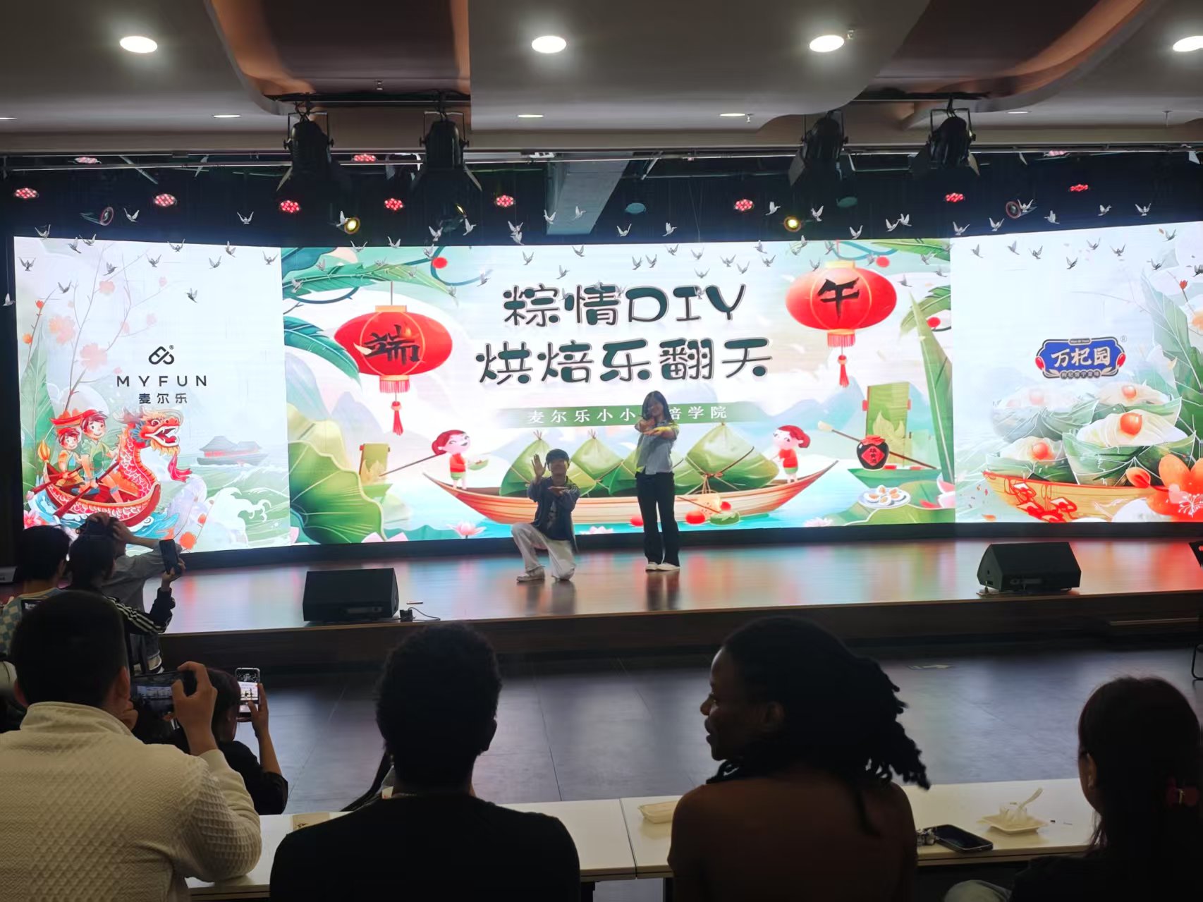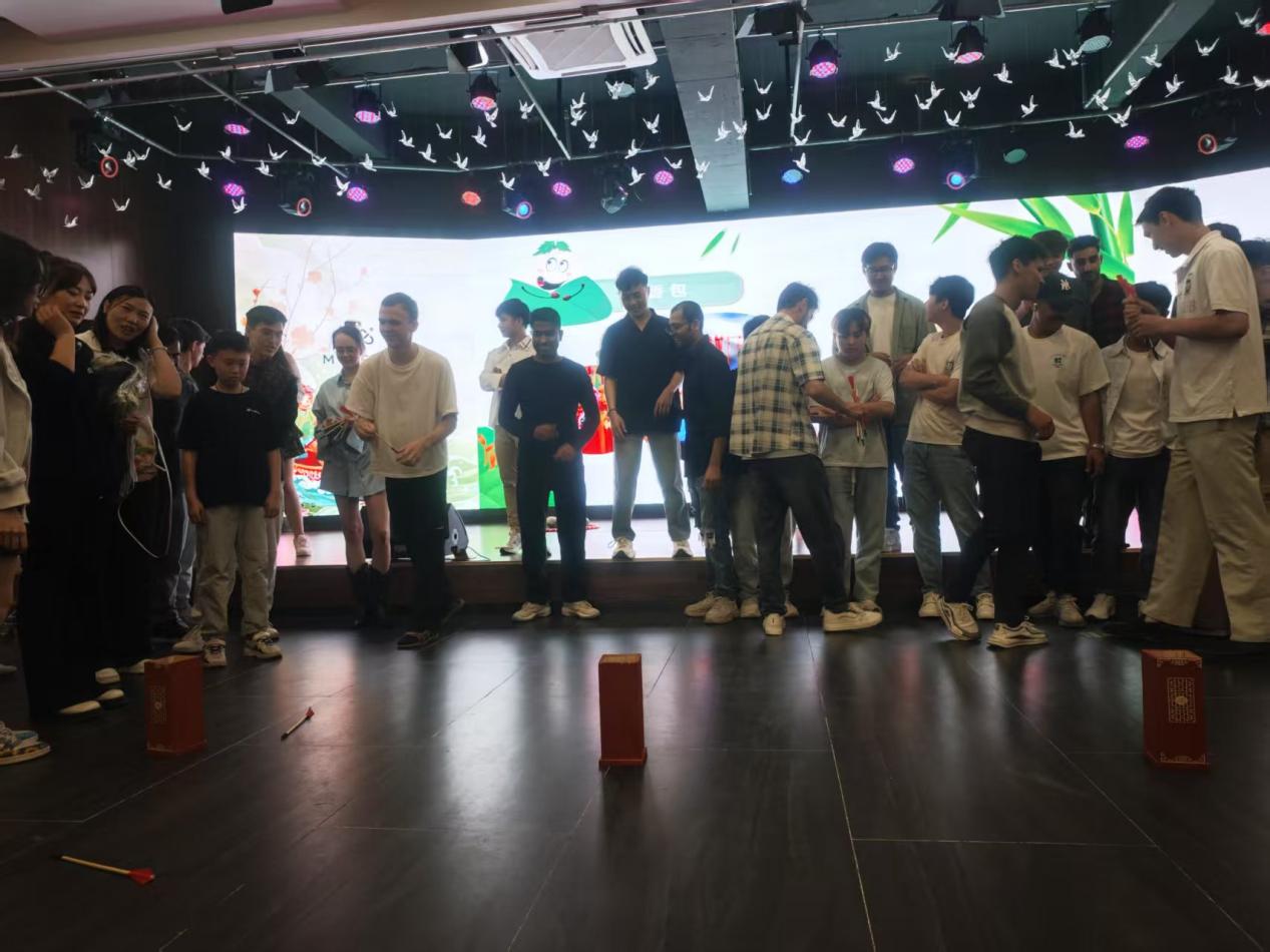 活动中,主持人向同学们介绍了端午节的起源以及各地的端午习俗,带领同学们制作香囊,组织大家进行投壶,同学们还进行了才艺表演。