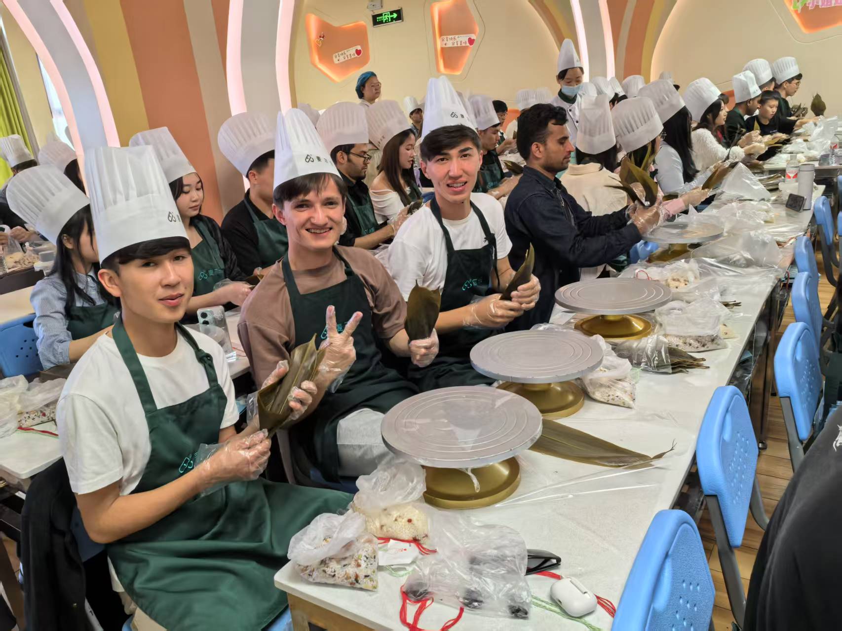 包粽子是体验活动最重要的环节,专业师傅现场示范粽子制作过程,从粽叶的挑选、糯米的填充到捆扎成型,每一步骤都耐心讲解演示。同学们自己动手尝试,在一次次失败与成功的尝试中,掌握了粽子制作技巧,也收获了满满成就感,大家纷纷表示,粽子看起来很简单,但想要包好粽子太不容易了,中国古人的智慧让人敬佩。