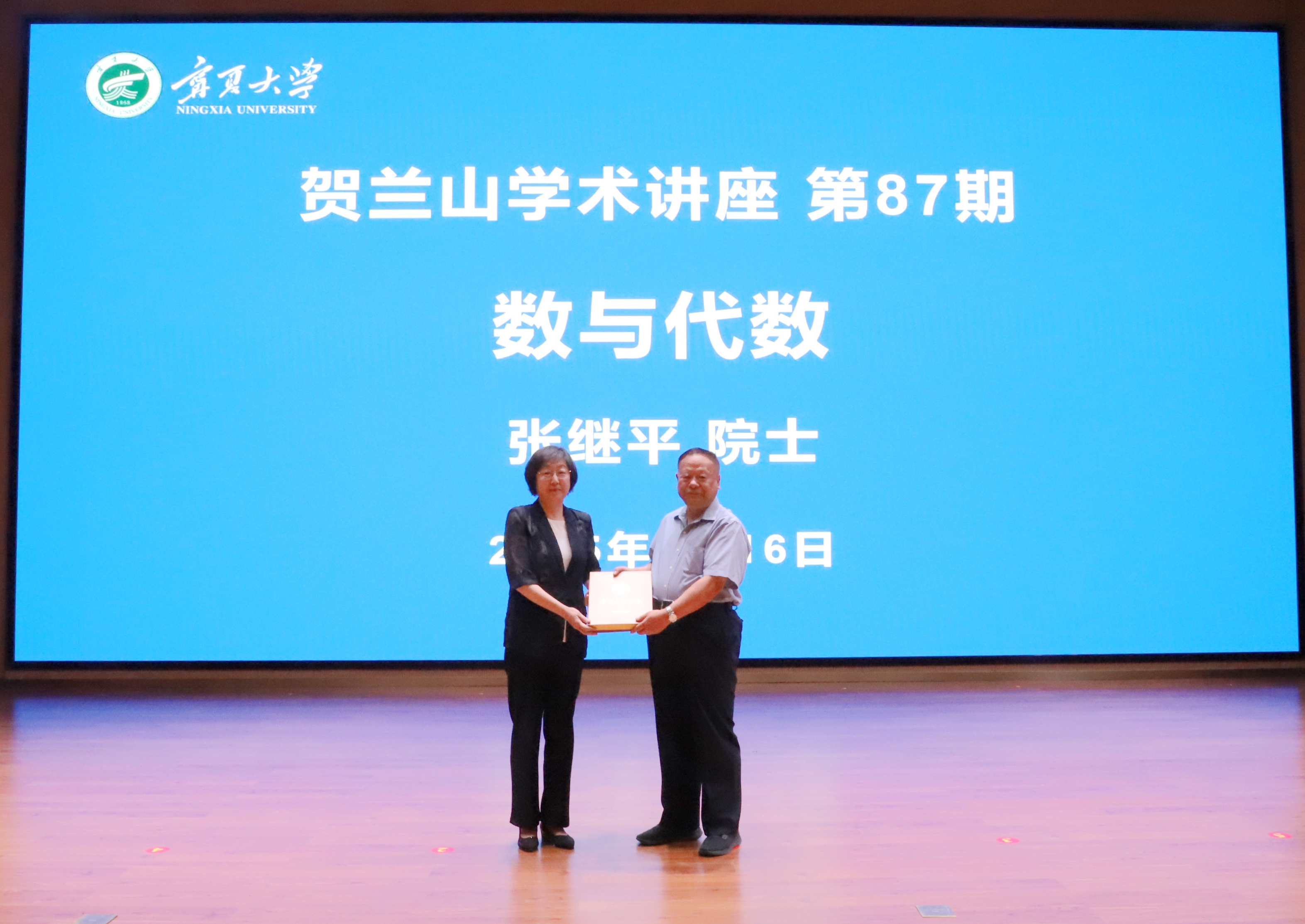 【beat365唯一官方网站新闻中心讯 数理与信息学部/文 姬晓姗/图】6月16日,北京大学博雅讲座教授、中国科学院院士、中俄数学中心主任张继平教授受邀在贺兰山校区笃行楼一楼报告厅为beat365官网师生作题为《数与代数》的学术讲座,讲座由校党委副书记韩惠丽主持。来自各学院近300名师生在现场聆听了学术讲座。
