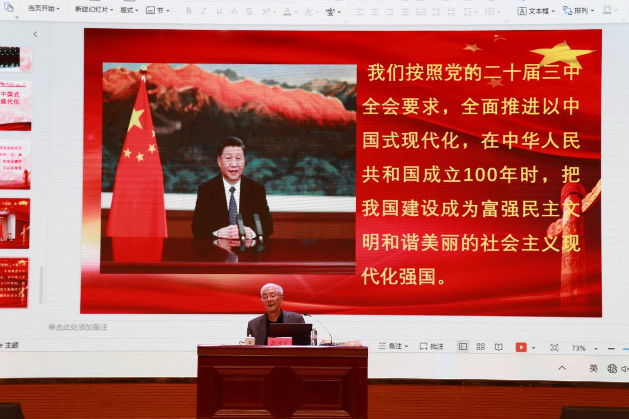 黄河表示,讲座是一堂深刻的思想政治理论课,也是一堂生动的爱国主义教育课,对于校区师生更加全面、深入理解党的二十届三中全会精神,增强中国式现代化的信心和决心,把思想和行动自觉统一到现代化强国建设和民族复兴伟业的伟大实践中具有重要的激励促进作用。他要求,要深刻理解推进中国式现代化的时代背景、历史方位、使命任务和重大原则、重大问题、重大举措等方面的内容,以钉钉子精神抓好各项改革任务落实落地。他希望同学们勇敢担负起新时代赋予的重任,志存高远、脚踏实地,不断突破自我、砥砺奋进,努力为中国式现代化挺膺担当,贡献青春力量。