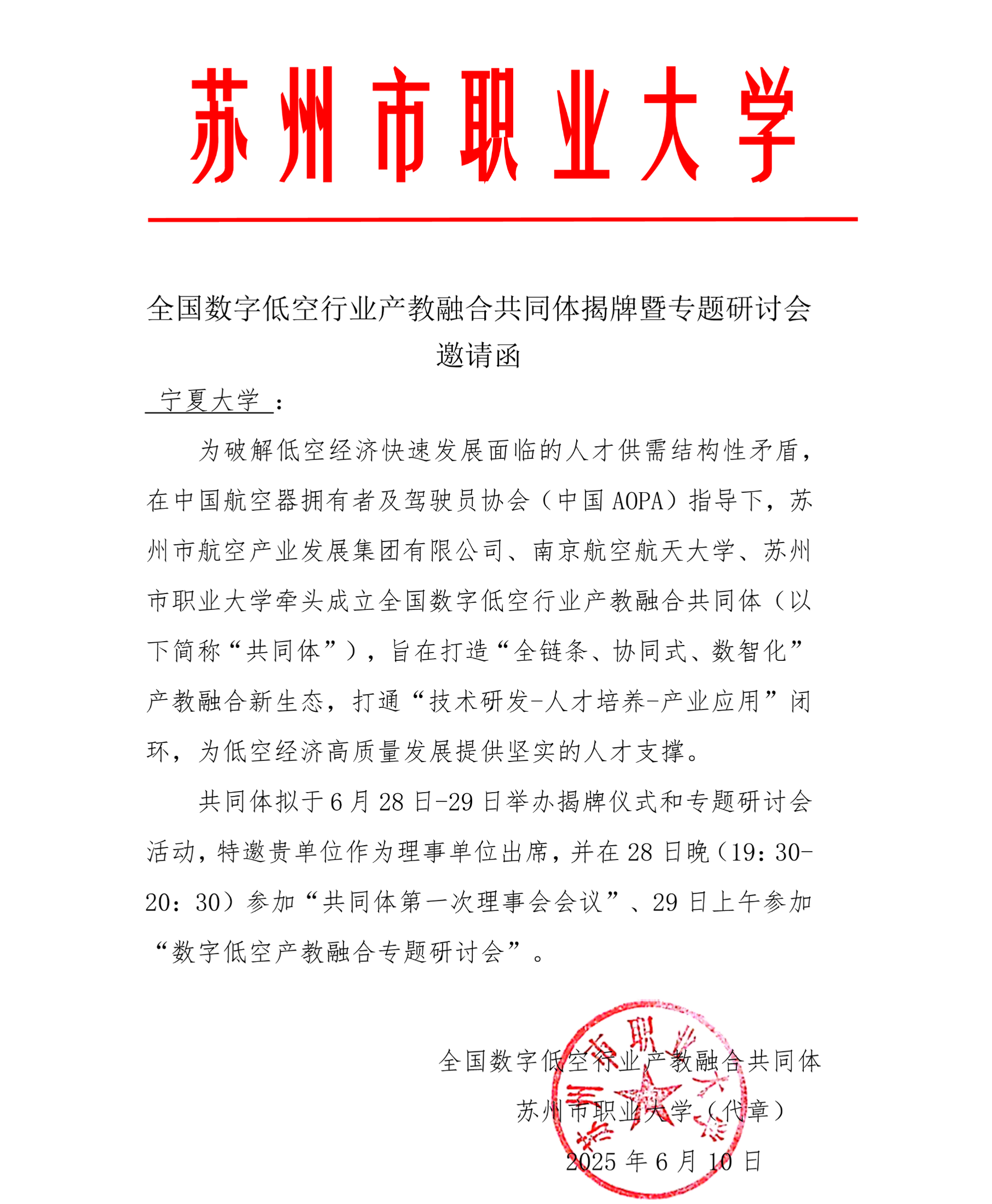【beat365唯一官方网站新闻中心讯 电子与电气工程学院】为加快推进学院低空技术与工程本科专业申报工作,积极对接跨区域产教融合资源,6月27日至29日,电子与电气工程学院院长孙学宏受邀带队赴苏州参加第三届低空(苏州)产业创新生态大会暨2025数字低空大会和全国数字低空行业产教融合共同体揭牌仪式。
