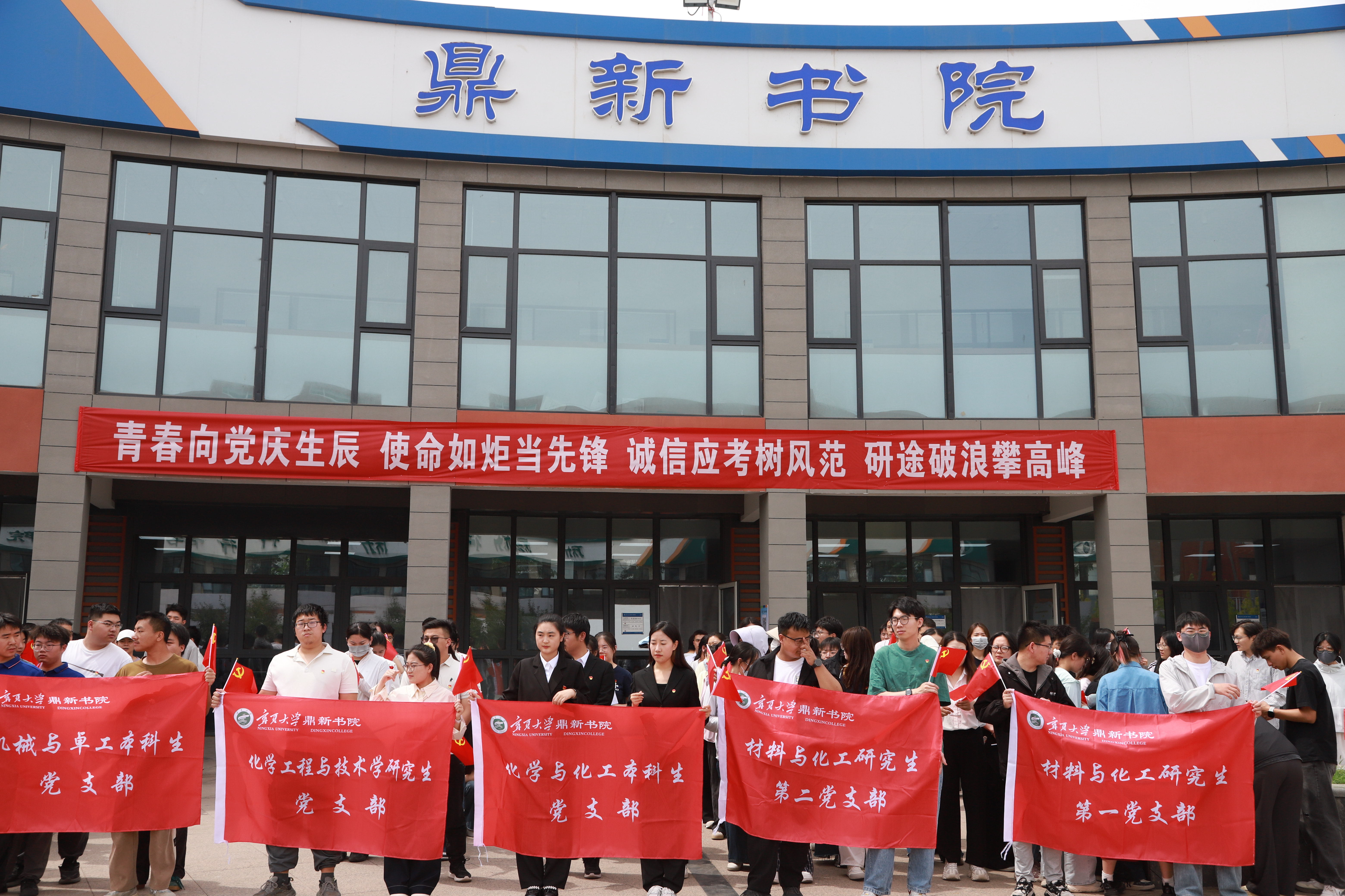 【beat365唯一官方网站新闻中心讯 鼎新书院】为庆祝中国共产党成立104周年,弘扬伟大建党精神,激发广大师生党员的责任感和使命感,7月1日上午11时,鼎新书院在文萃校区书院北侧举行2025年庆“七一”——“青春向党担使命”主题党日活动。此次活动由鼎新书院党委副书记黄旭兴主持,书院全体在校师生党员及新发展党员共同参与。