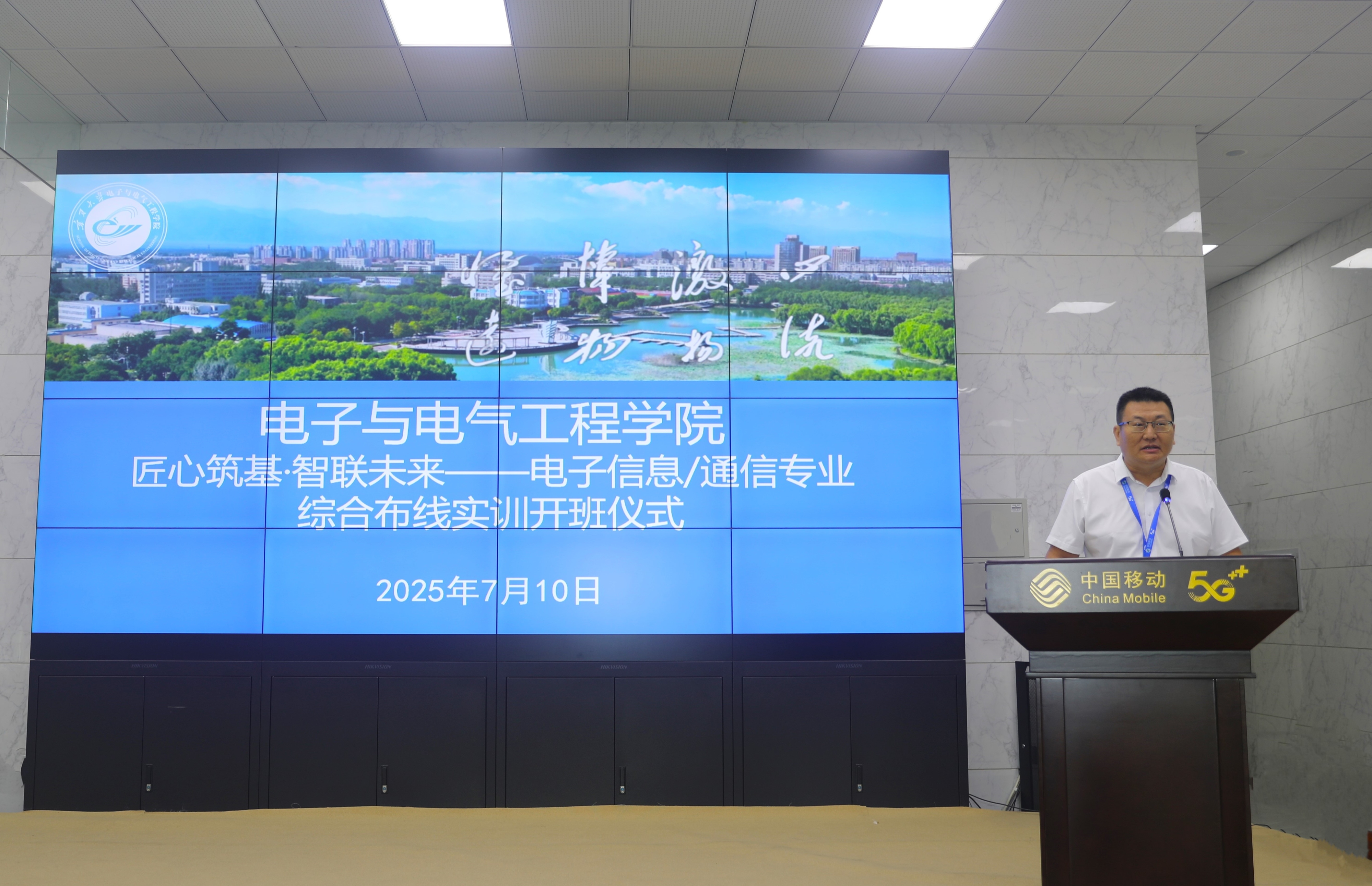 【beat365唯一官方网站新闻中心讯 电子与电气工程学院】为积极响应国家“新基建”与“数字中国”战略对高素质工程技术人才的迫切需求,7月10日,电子与电气工程学院“匠心筑基·智联未来”综合布线实训课程在中移铁通有限公司宁夏分公司正式开班。学院领导及行业专家出席开班仪式,2023级电子信息工程和通信工程专业全体同学参加会议,开班仪式由学院副院长李春树主持。