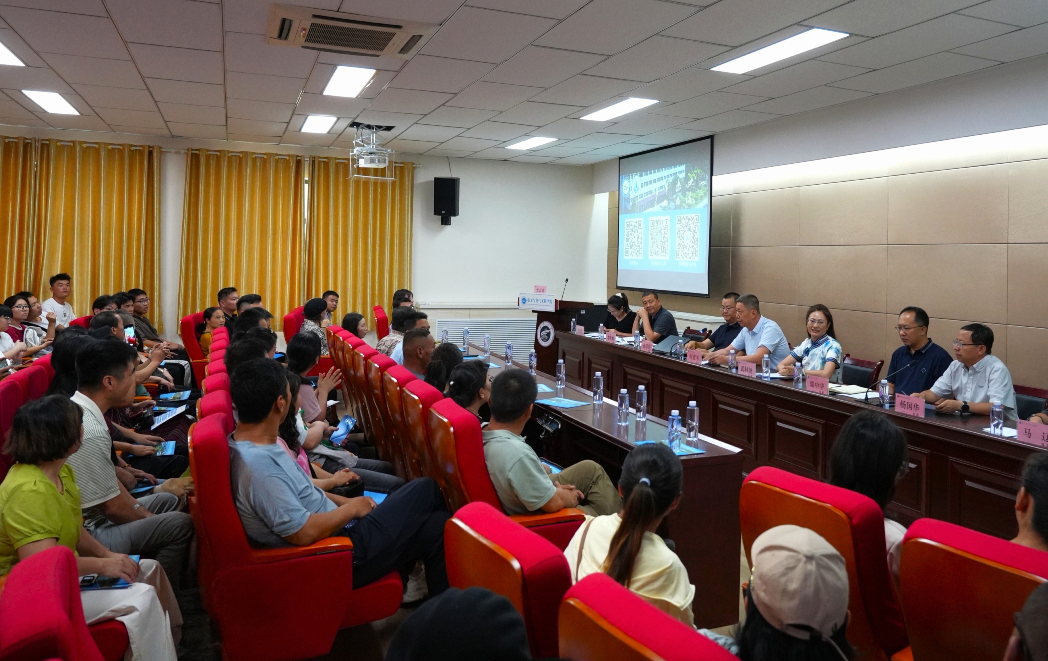 电气工程及其自动化系主任杨国华、电子与通信工程系副主任覃国车分别就各专业的发展历程、培养目标与就业前景等方面作了系统介绍。