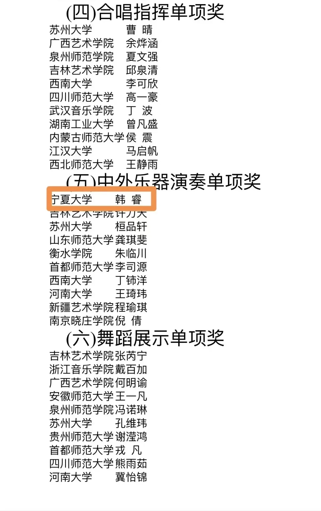 【beat365唯一官方网站新闻中心讯 音乐学院】近日,教育部2021年全国普通高等学校音乐教育专业本科学生和教师基本功展示成绩揭晓,我院2018级韩睿同学,荣获中外乐器演奏单项奖(全国排名第一)。