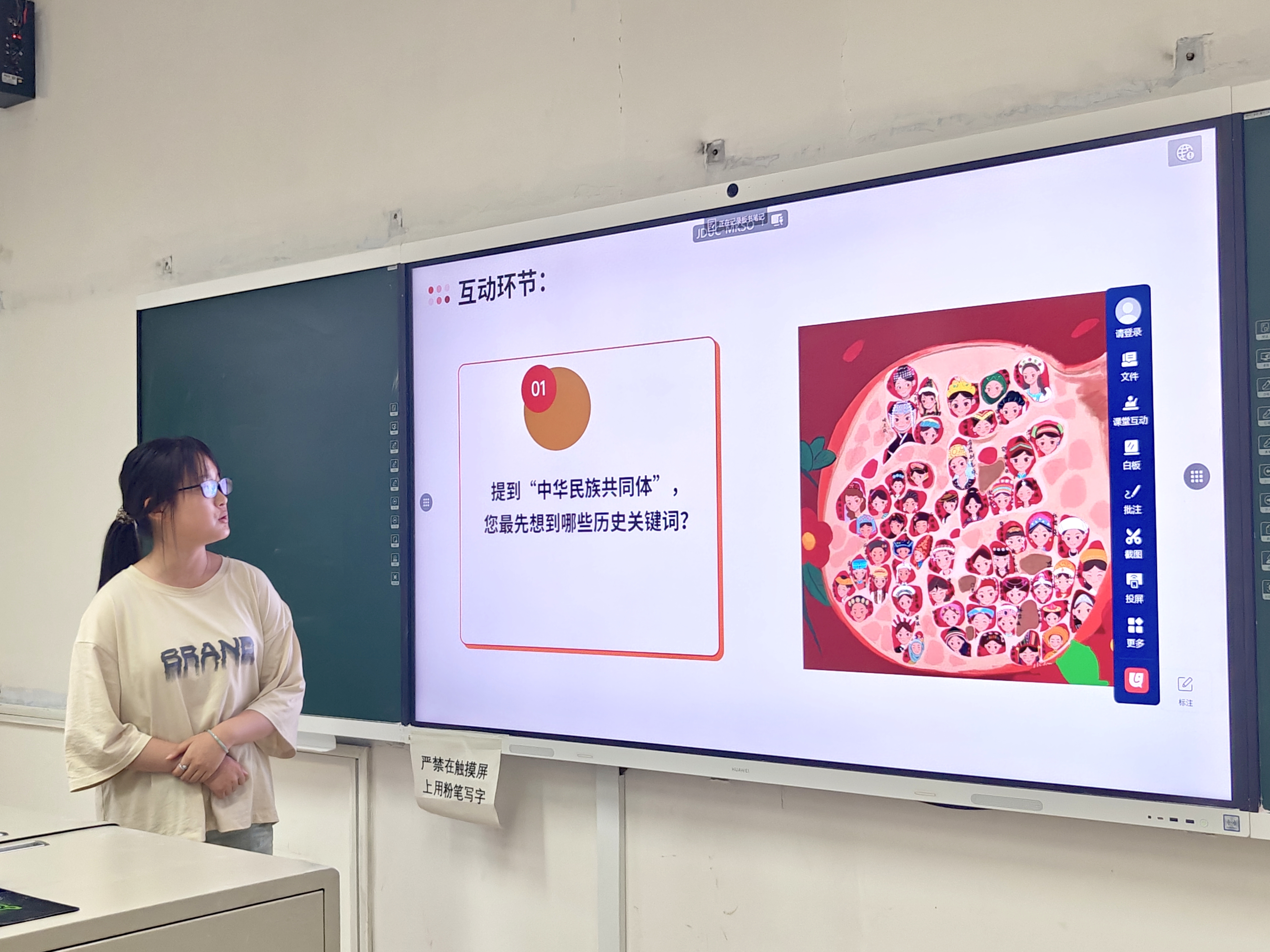 在212教室,宣讲员李小梅从“中华民族共同体”的概念内涵出发,系统梳理了从秦汉至新民主主义革命时期各历史阶段中华民族共同体的形成与发展,强调中华民族与各民族之间“大家庭与家庭成员”的关系,指出共同性与多样性长期并存的基本特征。宣讲在《爱我中华》的激昂歌声中结束,通过情感共鸣深化了同学们对中华民族共同体的体悟与认同。